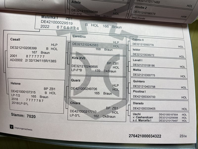 In vendita un elegante stallone Holsteiner di 3 anni, con un'ottima genealogia e le migliori caratteristiche per un futuro di successo nel salto ostacoli. Genealogia: Il padre è il stallone Crack, vincitore fino a 1,60 m. La madre, una figlia dell'eccezionale stallone Casall, attualmente si distingue nelle prove di salto ostacoli per la sua età, ottenendo voti eccellenti. La nonna Helene (di Quarz) ha ottenuto vittorie fino a S**, mentre l'avo Chiara (di Diarado) è stata piazzata fino a S*. Il stallone proviene dall'importante linea Holsteiner 7020, nota per aver prodotto numerosi cavalli sportivi di livello internazionale. Descrizione: Il cavallo è stato acquistato da puledro, è in ottima salute, ben muscolato, molto elegante nel portamento ed è stato allevato in modo appropriato – tutto l'anno in paddock all'aperto con molto movimento e con coetanei. Le radiografie effettuate ad aprile 2025 sono disponibili e prive di difetti. Finora lo abbiamo fatto saltare liberamente cinque volte. Durante queste sessioni si è dimostrato coraggioso, con grande senso di orientamento, prudente e dotato di capacità. È leggermente iniziato alla monta in tutte e tre le andature – un talento emergente per intenditori e sostenitori. Ha tutte le qualità per diventare un partner affidabile nello sport. Viene venduto solo perché, purtroppo, resterà troppo piccolo per me.