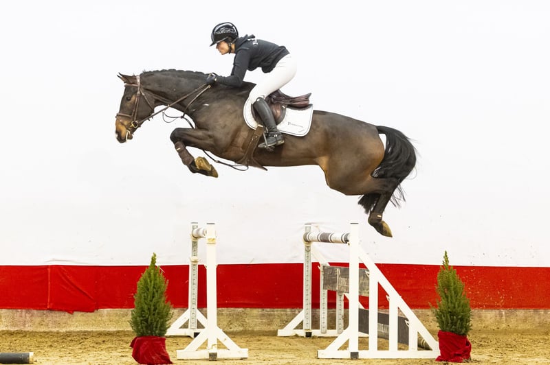 Check In ist äußerst leicht zu reiten, verfügt über einen großen, versammelten Galopp und eine natürliche Balance. Er springt mühelos, zeigt feine Technik und viel Sprungkraft. Dieser junge Holsteiner erreichte bei seinen ersten Auftritten eine Bewertung von 8,7. Dank seiner Rittigkeit und seines Charakters ist er nicht nur für den Springreitsport interessant, sondern auch sehr gut als Reitpferd geeignet, beispielsweise für den amerikanischen Markt. Seine Abstammung rundet das Bild ab. Züchterisch kommt er von Casall, geritten von Rolf-Göran Bengtsson, der auf höchstem Niveau erfolgreich war. Die Mutter Sannie (von Sandro Boy) war bis 1,40 m erfolgreich und erzielte bereits in jungen Jahren mehrere Platzierungen. Sie brachte mehrere internationale Sportpferde hervor: Valley of the Wind, das bis 1,30 m erfolgreich war; Charmaine Blue PS, die 2025 einen CSI2* Grand Prix bei 1,45 m gewann; und SMA Cabacento, das bis 1,45 m springt. Die Großmutter Salamine (von Cento) brachte ebenfalls erfolgreiche Nachkommen hervor, darunter Qualitive (1,35 m) und San Serai Leon (1,50 m). Diese Mutterlinie produziert konsequent Pferde, die mindestens 1,30 m springen, was die Zuverlässigkeit und den sportlichen Wert der Familie unterstreicht. Mit seiner natürlichen Balance, seiner Arbeitsbereitschaft und seiner beeindruckenden Blutlinie ist Check In ein vielseitiges Sportpferd mit viel Potenzial – eine Chance für jeden Reiter oder Investor, der Qualität und Zukunftsperspektive sucht.