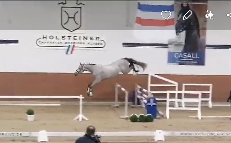 Diamore, chiamato Didi, è un bellissimo stallone grigio di 3 anni, adatto alla disciplina sportiva di alto livello. Si distingue per il suo modo affascinante e il suo carattere eccellente. Didi ha un talento promettente per il salto, è cauto e molto dotato. È stato recentemente iniziato alla monta e anche in questa fase ha dimostrato il suo carattere straordinario. Ora cerca una nuova famiglia che lo possa far progredire nell’ambito sportivo e farlo partecipare a competizioni. Sono disponibili radiografie, risalenti a circa 6 mesi fa. L’epoca del cavallo è circa 170 cm di altezza e si presenta in ottima salute. Per ulteriori informazioni, si prega di contattare telefonicamente.
