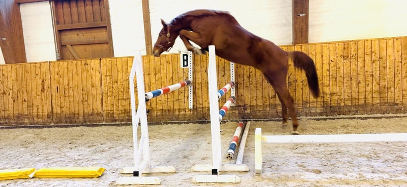 Beautiful, movement-rich, premium Holsteiner young horse with a strong pedigree by Nabab de Rêve out of a mare by Chin Champ. From the direct dam line and the 18a2 dam line, numerous successful horses have excelled in higher-level show jumping. The horse has been backed, jumps very well, and moves exceptionally well. Genetically, he is well-suited for show jumping and could also be very interesting as a versatile horse. As one of the last offspring of the exceptional stallion Nabab de Rêve, he is particularly noteworthy. We also have several young horses from our own breeding available. For inquiries, please contact +49 173 3074429 or info@zanddynasty.com.