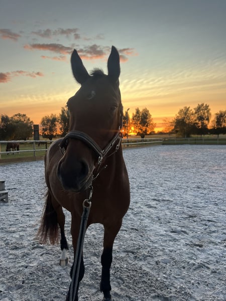 Coupé de Conceur, geboren am 01.05.2021, Brauner, Holsteiner Wallach, mit einem aktuellen Stockmaß von ca. 1,65 m. Coupi, wie wir ihn liebevoll nennen, wurde im vergangenen Frühjahr/Sommer schonend angeritten. Dabei zeigte er sich stets brav, aufmerksam und ohne Unarten. Er überzeugt durch seine große Lernbereitschaft, seine Motivation und den ausgeprägten Willen, seinem Reiter gefallen zu wollen. Neue Aufgaben nimmt er interessiert und kooperativ an. Im täglichen Umgang ist Coupi lieb und unkompliziert. Hufschmied und Tierarzt sind für ihn problemlos. Im September letzten Jahres wurde bei ihm eine Arthroskopie durchgeführt – er ist vollständig genesen und ist nun bereit für seine weitere sportliche Ausbildung. Das Verladen gehört nicht zu seinen Lieblingsbeschäftigungen, mit etwas Ruhe, ein wenig Zeit und ein paar Möhren klappt aber auch das. Sein Vater ist der international erfolgreiche Coupe de Coeur, im Besitz von Ludger Beerbaum, Sieger der Deutschen Meisterschaft 2011 in Balve, Nationenpreissieger 2008 in Rotterdam sowie mehrfacher Sieger in Großen Preisen und Weltcups. Die Mutter Tamira VII stammt ab von Contender x Irina B und vereint damit weitere bewährte Holsteiner Springlinien. Coupi ist ein ehrlicher Nachwuchswallach mit viel Qualität, ideal für den ambitionierten Springreiter, der ein junges Pferd mit Perspektive bis in den höheren Sport sucht. 📞 Bei ernsthaftem Interesse freuen wir uns über eine Kontaktaufnahme.