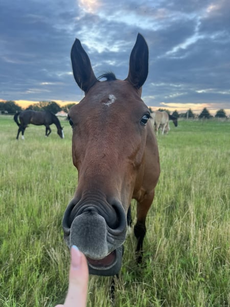 Coupé de Conceur, born on May 1, 2021, is a dark bay Holsteiner gelding standing approximately 1.65 m (16.1 hh). Lovingly called Coupi, he was gently backed last spring and summer. Throughout this process, he proved to be well-behaved, attentive, and free of any vices. He impresses with his strong willingness to learn, motivation, and a pronounced desire to please his rider. He approaches new tasks with interest and cooperation. In daily handling, Coupi is sweet and uncomplicated. The farrier and veterinarian have no issues with him. In September of last year, he underwent arthroscopy; he has fully recovered and is now ready for his further sporting training. Loading onto the trailer is not his favorite activity, but with patience, some time, and a few carrots, it can be managed. His sire is the internationally successful Coupe de Coeur, owned by Ludger Beerbaum, winner of the German Championship in 2011 in Balve, Nations Cup winner in 2008 in Rotterdam, and multiple winner of grand prix and World Cup classes. His dam, Tamira VII, is by Contender out of Irina B, combining proven Holsteiner jumping lines. Coupi is an honest young gelding with great quality, ideal for an ambitious show jumper seeking a young horse with potential for higher-level competition. 📞 Serious inquiries are welcome to contact us.