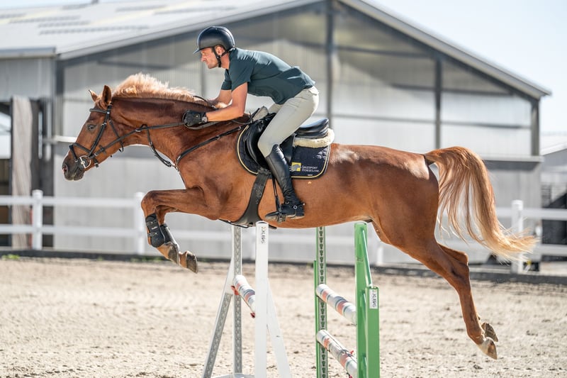 Lenon, 4 Jahre alter Holsteiner Wallach von Livelo x Con Cosmos. Lenon ist ein schicker Fuchs mit hellblondem Mähne und Schweif. Trotz seines Aussehens ist er ein wunderbarer Beweger und ein sehr talentierter Springer. Lenon hat Abstammung und zeigt große Qualität über dem Sprung. Er wurde letzten Herbst angeritten. Lenon ist einfach im Umgang und hat keine Unarten.