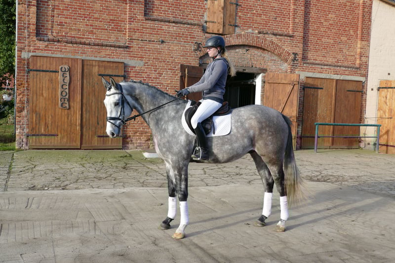 Chacco Ice: - Een modern dressuurpaard met een bijzonder charme - Met springkwaliteit en drie echte basisgangen - Lichtvoetig en comfortabel in het zadel - Daarnaast met een prachtig interieur - Al ervaren in tweespannen - Geschikt als familie-, voltige- of hunterpaard