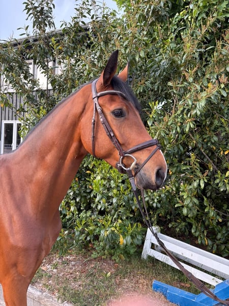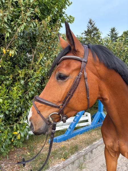 This wonderful Holsteiner gelding impresses not only with his striking appearance, talent, and rideability but especially with his breathtaking temperament. He is fearless, always eager to explore the other side, and constantly strives to make the impossible possible. He fights for his rider and always aims to please. He is very sweet and affectionate with people. His siblings are successful in show jumping at 1.60 m level. Unfortunately, Brownie has two chips, which is why he is offered at a significantly reduced price. A 5-star home is sought for this exceptional gelding, with people who will truly cherish this fantastic fellow.