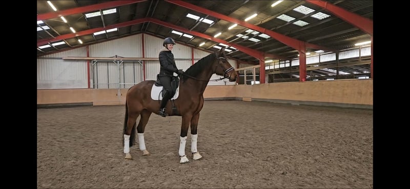 For sale is UNESCO, a tall-built Holsteiner gelding. He has previously mastered dressage movements up to class L and has also competed in small show jumping courses. Due to personal circumstances of the previous owners, UNESCO has had an extended period without regular work and has been living in a pasture turnout. We have recently ridden him again to assess his current state; the video was recorded recently. Since UNESCO is not currently in continuous training and needs to be carefully and age- and horse-appropriate retrained, he is being offered solely as a companion horse. In handling, UNESCO is very honest and well-behaved. In the herd, he presented himself as uncomplicated and social. Due to his calm temperament, we can also easily imagine him as a vaulting horse. Please contact us by phone only, no emails. Information provided without guarantee. Price plus VAT.