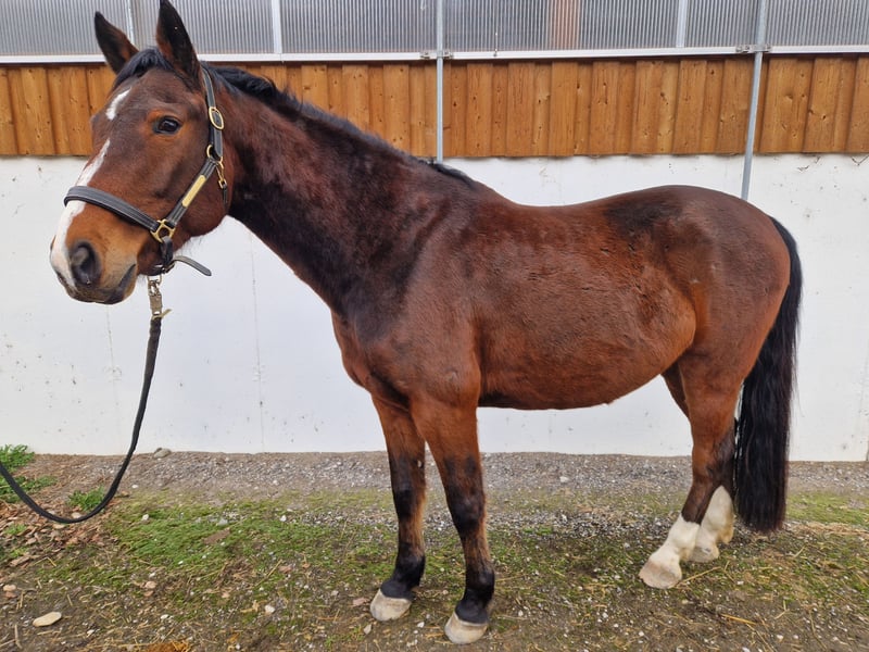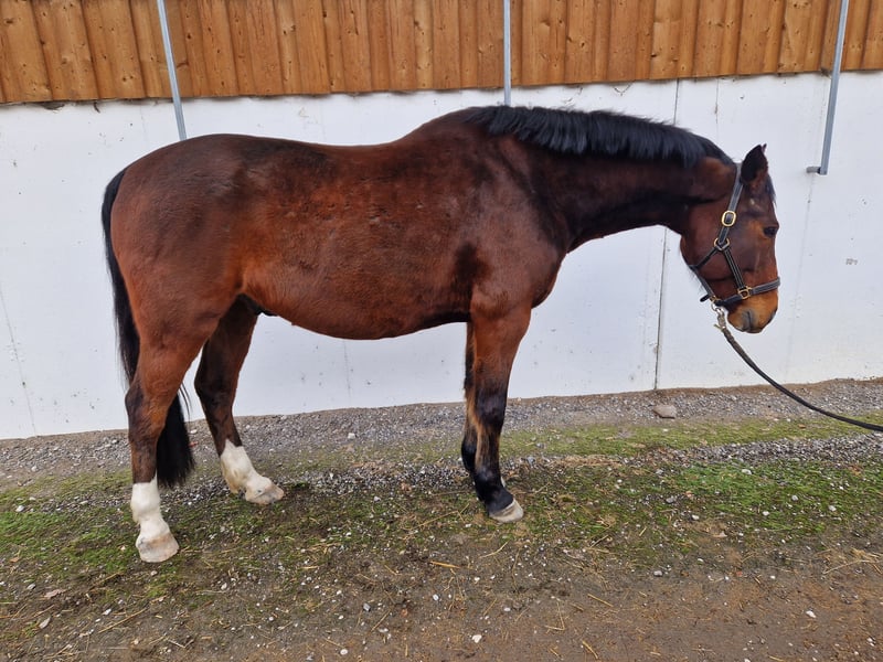 Ich suche für meinen mittlerweile 9 Jahre alten Wallach "Nabucco" ein neues Zuhause. Ich habe ihn mit 3 1/2 Jahren vom ungarischen Nationalgestüt gekauft. Er kennt Bodenarbeit, (Doppel-)Longe, Freispringen, Spaziergänge, Schrecktraining, ... Vom Sattel aus kennt er die Basics hat hat schon ein paar Sprünge unter dem Reiter gemacht und geht in der Gruppe und auch alleine ins Gelände. Leider hatte er im Sommer 2024 einen Sehnenschaden hinten links, der jedoch komplett verheilt ist. Aufgrund meiner Schwangerschaft und jetzt Kleinkind wurde er seitdem nicht mehr wirklich gefördert. Seit gut 1 1/2 Jahren wird er intensiver tensegral gearbeitet. Im Dezember 2025 hat er die Diagnose "kissing spines" bekommen. Er kann jedoch lt. Aussage des behandelnden Tierarztes normal geritten und auch gesprungen werden - was ihm viel Freude bereitet - und ist aktuell symptomfrei. Aufgrund der o.g. Befunde ist er kein Gewichtsträger und braucht einen Reiter/Menschen der ihm Sicherheit vermittelt. Ansonsten ist er ein total liebes Pferd, welches sich immer freut, wenn man kommt. Er lernt rechht schnell und denkt auch mit und möchte dabei immer gefallen. Er ist aktuell barhuf, geimpft gegen Tetanus, Influenza und Herpes. Er lebt ein einem Aktivstall und fühlt sich dort sehr wohl, daher würde ich mich freuen, wenn er in einer ähnlichen Haltungsform bleiben würde. Eine Verfügung - auch mit umstellen - wäre grundsätzlich auch möglich.