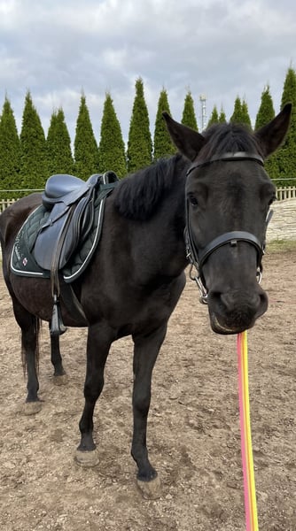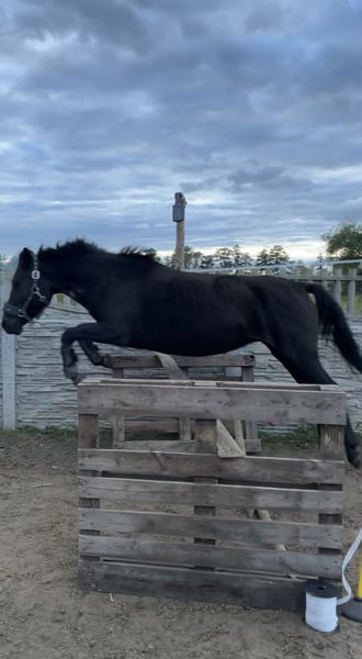 Witam, sprzedam/lub zamienię zgrabną i bardzo inteligentną klacz huculska Amelka (Goral). - ma 4 lata, ok.135 w kłębie, Prawidlowe kopyta, zdrowa, duża odporność - urodziła źrebaka 7 msc temu, przekazuje bardzo dobre geny i dobrą głowę, jest bardzo dobrą matką. Źrebak po niej jest elektryczny, ładny lekki ruch, bardzo skoczny, szukający kontaktu z ludźmi, gruba sierść, bardzo gęsta grzywa i ogon - na padoku bezproblemowa, unika sprzeczek -dostałam ją jak była w stanie surowym, nauczyłam ją całych podstaw -czyszczenie, podawanie kopyt, odczulanie, lonża, początki zajeżdżania, wyjazdów w teren - kobyłka jest elektryczna ale bardzo spokojna, na stanowisku można ją zostawić a ona będzie stać bez ruchu, na spacerach bardzo spokojna z ręką na sercu można dać dziecku i wiem że nic nie zrobi i będzie grzecznie szła ( u nas chodzi często jako koń czołowy ze względu na swoją odwagę i niepłochliwość), jest totalnie bombo odporna. Grzecznie chodzi na lonży, nie ma problemu z zakładaniem sprzętu, jest w trakcie zajeżdżania (póki co stęp i kłus) ale i tak przyjmuje niedoświadczonych jeźdźców - do każdego jest bardzo kochana i przyjazna - bardzo skoczna i szybka, kocha skakać. W korytarzu sama leci aby skoczyć (pierwszy raz w korytarzu skoczyła 85 cm z możliwościami na dużo więcej) bardzo dobra technika skoku. W przyszłości napewno dobrze się sprawdzi w skokach jak i zawodach - filmiki i zdjęcia wysyłam na Messenger lub Whatsapp, do wglądu również ruch źrebaka - sprzedaje z bólem serca ze względu na potrzebę czegoś większego - więcej info na pv, cena do lekkiej nego :)