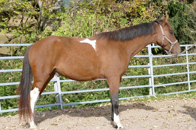 Huzule Gidran (Wbl.) Mix, pinto, hauteur 150 cm. Cheval calme, élégant et au tempérament doux, doté d’un caractère en or, avec d’excellentes qualités de galop et une forte présence positive ; monté en première et deuxième étape ; volontaire, courageux et facile à monter, très léger en selle, sûr en extérieur seul, potentiel pour la dressage et le saut d’obstacles ; facile à manipuler – un cheval de rêve pour l’avenir pour quelqu’un qui cherche quelque chose de spécial ! Forge et déchargement sans souci, adapté au box en paddock, compatible avec un groupe de chevaux.