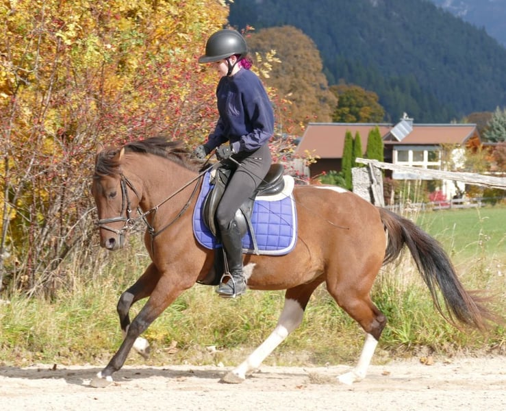 Huzule Gidran ( Wbl.) Mix Schecke Stm. 150cm. leichtrittiger, bildhübscher, gelassener Typ mit goldenem Wesen, sehr guten GGA und viel positiver Ausstrahlung; 1 und 2 spännig gefahren; willig, unerschrocken und unkompliziert beim Reiten, sehr leicht zu sitzende GGA, sicher auch alleine im Gelände, Potential für Dressur und Springen, unkompliziert im Umgang - Ein Traumpferd für die Zukunft für jemanden, der etwas Besonderes sucht! schmiede u verladefromm, für Offenstall geeignet, in der Herde verträglich