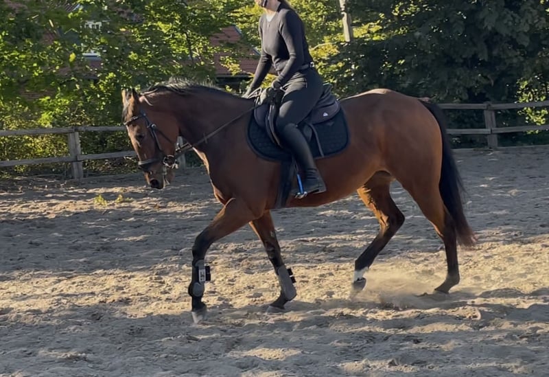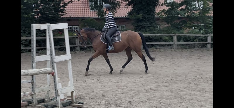 Aus Zeitmangel zum Verkauf: Irische Vollblutstute , ca 154 cm mit guten GGA. Noch überbaut, wird also wohl noch wachsen... Sternchen steht noch am Anfang ihrer Ausbildung, ist aber immer motiviert bei der Sache und weiss zu gefallen. Mit gesundem Go ausgestattet. Erste Sprünge unter dem Sattel gut gemeistert.Aufgrund Alter und Ausbildungsstand noch nicht für Anfänger geeignet. Influenza und Tetanus geimpft, Zähne frisch gemacht. Noch kein Tüv vorhanden,kann natürlich vom Käufer gemacht werden Für Probereiten berechnen auch wir 20€. Alles weitere nur per Telefon, wir verkaufen ein Tier,keine Sache. Tel Nr der Ausbilderin: 0157 56176969 ( wenn keiner erreichbar gerne auf Mailbox sprechen,ruft zeitnah zurück)