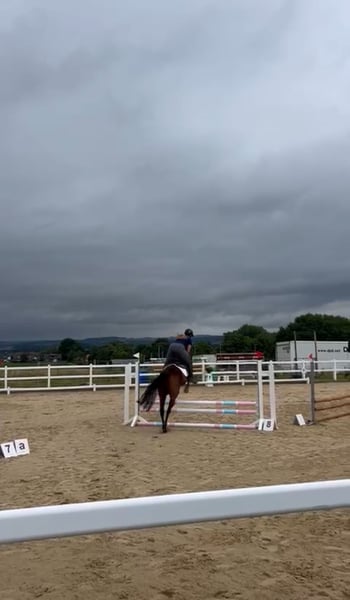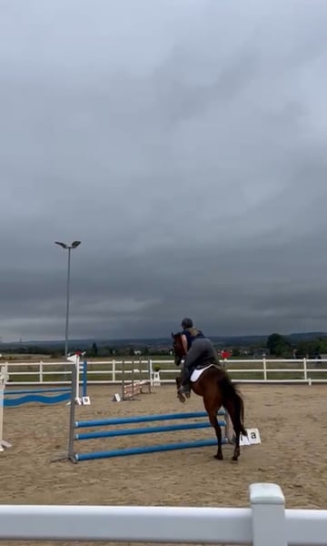 Klacz, 6-letnia, 160 cm Klacz jest miła w obcowaniu. Łatwo daje się lonżować, dobrze przechodzi przez przeszkody i cavaletti na lonży. Z jeźdźcem już skakała. Kontynuujemy jej szkolenie, wraz z dalszym szkoleniem cena wzrasta. Sprzedajemy ją tylko do wspierającego domu. Nie ma powodu sprzedaży, trochę pracuje w naszej szkole jeździeckiej. Jeśli znajdzie 5-gwiazdkowy dom prywatny, będziemy bardzo zadowoleni. Możemy ją chętnie przedstawić / lonżować, możliwe jest również jazda próbna. 20€ Proszę pisać przez WhatsApp 015204547603