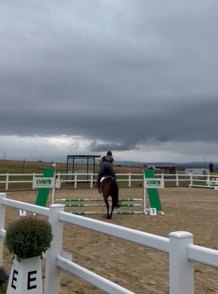 Yegua, de 6 años, 158 cm La yegua es muy amigable en su trato. Se deja manejar fácilmente, incluso con doble cuerda. Trabaja bien sobre los obstáculos y saltos en la cuerda y con jinete. También puede salir sola a pasear por el campo. No se vende a escuelas de equitación. Busca un hogar amoroso con un jinete de ocio, donde pueda seguir siendo fomentada acorde a su edad. Podemos mostrarla trotando o en la cuerda, y también es posible probarla a la monta. Precio: 20 € Se permite visitarla y montar varias veces si se desea. Por favor, contacta por WhatsApp al 015204547603 o llama si prefieres.