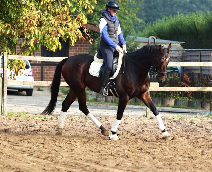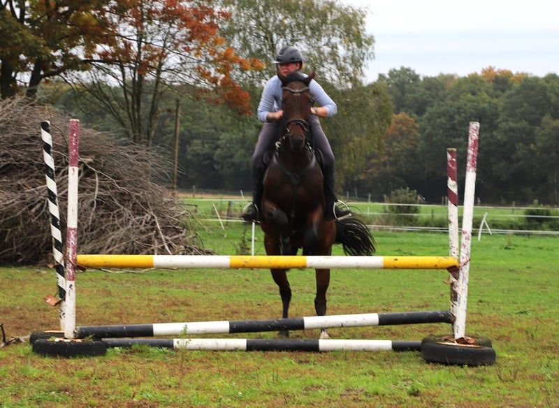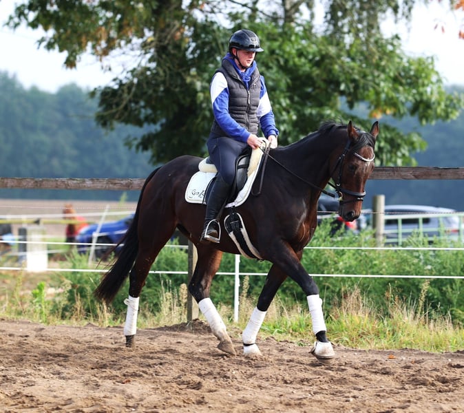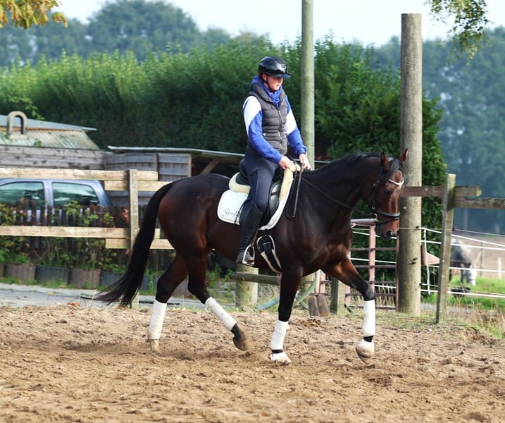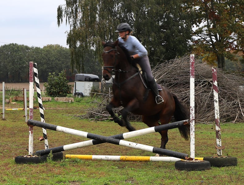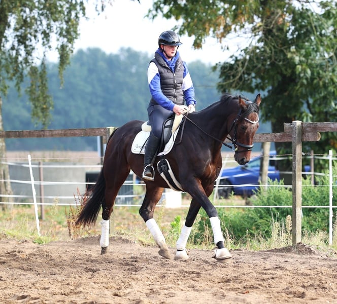 **Sales Advertisement: Irish Thoroughbred Gelding** For sale is a beautiful Irish Thoroughbred gelding, born in 2019. With an elegant dark brown coat and a height of 164 cm, he is both visually and characteristically a real eye-catcher. This versatile gelding shows potential in various disciplines and is excellently suited for eventing. He is well-trained and has already gained initial experience in dressage as well as show jumping. Additionally, he impresses with his pleasant temperament and willingness to learn. The gelding is well-mannered, easy to handle, and is suitable for both experienced riders and ambitious beginners looking for a talented horse to grow with together. He is regularly vaccinated, dewormed, and has a current health check. If you are looking for a reliable and talented partner for eventing, then this Irish Thoroughbred gelding is just right for you! If you are interested or have any questions, please feel free to get in touch.