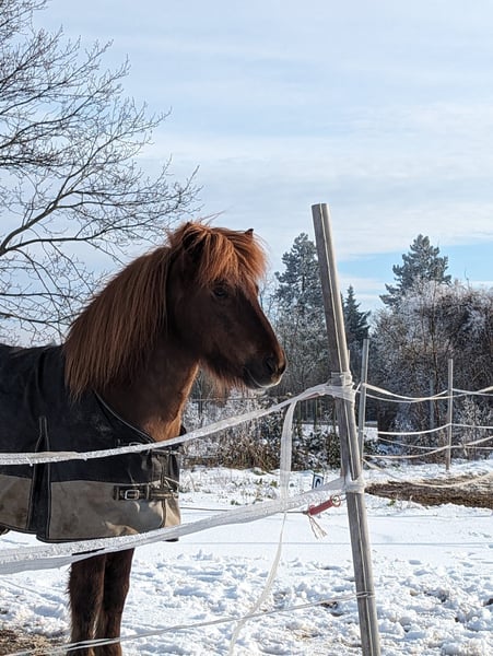 Kopar frá Haukagili (Vater: Eldur frá Torfunesi; Muttervater: Rodi frá Múla) ist ein temperamentvoller und hochtalentierter Fünfganghengst mit Potenzial für den großen Sport A im Fünfgang und Tölt (T1 und T2). Er ist in allen fünf Gangarten sehr gut ausgebildet, hat sehr gute GGA, viel Tölt mit Balance und Tempo und einen schnellen und sicheren Pass. Er ist für den routinierten, geübten und an den Hilfen feinen Reiter geeignet. Er ist jedoch nichts für Anfänger oder unsichere Reiter. Am Boden ist Kopar immer anständig und höflich. Er steht am Anbindeplatz neben jedem Pferd, freut sich über jede Zuwendung und ist von jedem zu händeln (ein kleiner Schmusebär 😉). Er ist nicht nur bildschön, sondern kennt auch Hunde, Autos, Traktoren, Lkws und alles andere. Hufschmied und TA sind kein Problem, auch das Verladen nicht. Leider kann ich ihm mangels Zeit nicht gerecht werden. Ich wünsche mir jemanden für Kopar, der ihm die volle Aufmerksamkeit schenkt, sein hervorragendes Potenzial zu schätzen weiß und es entsprechend fördert. Auf der Weide wäre er ein guter Lehrmeister für Junghengste. Er wird nicht aus der Not heraus verkauft und nur in die besten Hände abgegeben.