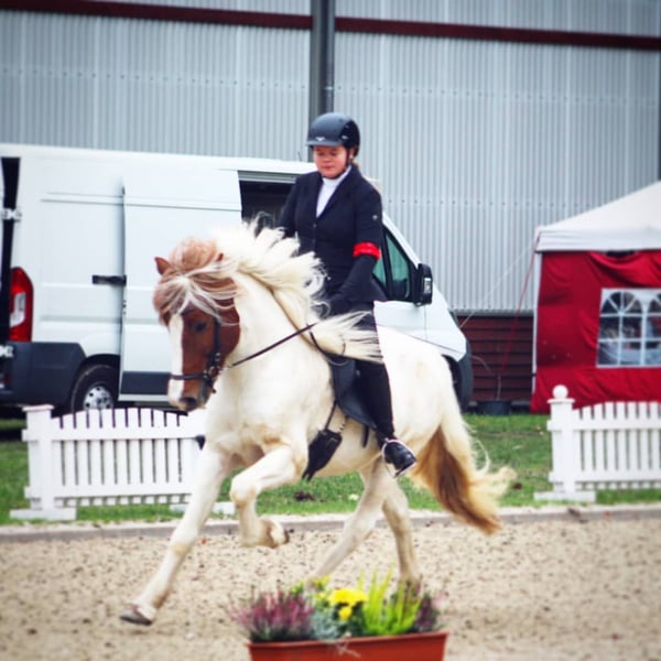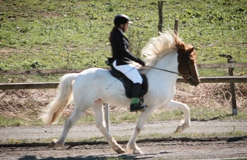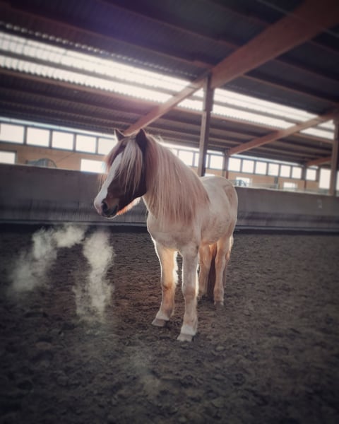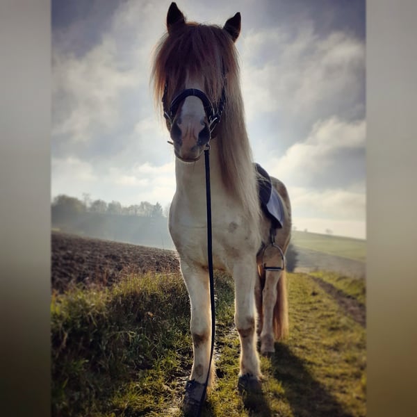 • Gandálfur frá Ytra-Hóli • FEIF-ID: IS2013180530 • Born: 2013 • Color: Chestnut with spots • Height: approx. 1.40 m • FIZO conformation: 8.5 for limbs & mane, 8 for head and proportions • Gait ability: clearly separated gaits, always rhythmically secure in tölt • Passes on beautiful colors, great character & people-oriented offspring • Competition experience: T3, T4, V2, F2 as well as pace track • Familiar with paddock box with neighbors • Pedigree: Sire: Lukku-Láki frá Stóra-Vatnsskarði Dam: Gjöf frá Ytra-Hóli Grandsire: Álfur frá Selfossi Granddam: Aron frá Strandarhöfði • Location: 66901 Schönenberg-Kübelberg • Sale only due to lack of time, fixed price, please only serious inquiries Gandálfur is an extraordinary stallion who captivates everyone with his charm, golden character, and impressive appearance. He is very well-behaved, easy to ride, and always rhythmically clear in tölt, whether in the arena, on the outdoor riding arena, or in the countryside. He reliably goes out alone or in a group and always shows himself to be calm, friendly, and relaxed. His offspring impress with their people-oriented nature, pleasant temperament, and beautiful colors just like their father. With his competition experience, he is an ideal horse for youth or juniors looking for a safe, performance-ready, and elegant horse, but also for leisure or family riders who want to enjoy a reliable and charming partner. At competitions, he shows his best side, stands easily in the paddock, and does not require a box, always remaining balanced and uncomplicated to handle. A true heart horse that is only being offered to the very best hands due to lack of time.
