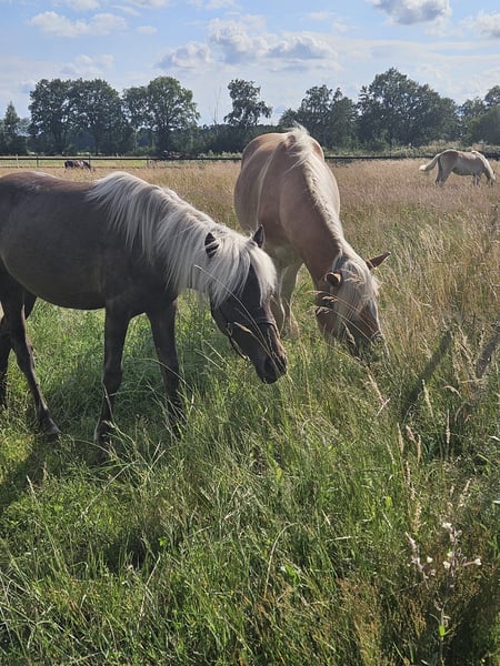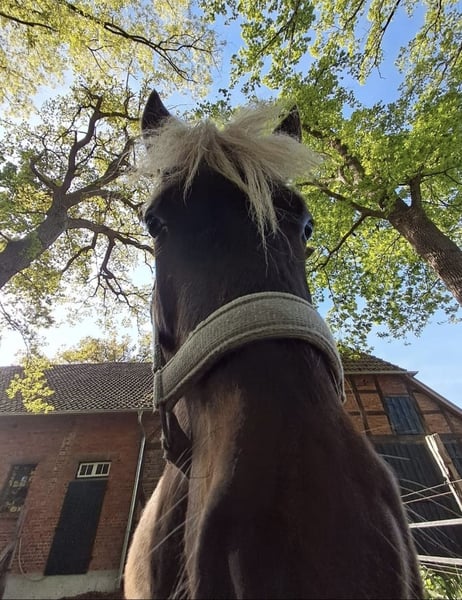 Zum Verkauf steht ein absolut außergewöhnlicher Isländer × Classic Pony Mix – ein echtes Schmuckstück Karlson, geboren im Juni 2023, ist aktuell noch Hengst. Gegen einen Aufpreis von 400 € kann er vor dem Kauf gelegt werden. Er ist nicht nur durch seine besondere Farbe ein echter Hingucker, sondern überzeugt vor allem mit einem Charakter aus Gold. Ein solches Gesamtpaket findet man wirklich nur wie die berühmte Nadel im Heuhaufen. Karlson kennt bereits das Fohlen-ABC, ist halfterführig, geht zuverlässig auf den Hänger, ist schmiedefromm und zeigt sich ausgesprochen kinderlieb – er genießt es, geputzt und betüddelt zu werden. Altersbedingt wurde er noch nicht longiert oder geritten und ist somit roh. Er ist ein aufgewecktes, lernwilliges, verspieltes und sehr kluges Kerlchen, das gerne spazieren geht und mit Freude neue Dinge lernt. Schrecktraining kennt er bereits und auch Hängerfahren hat er schon mehrfach ruhig und souverän gemeistert. Bei uns lebt Karlson in einer reinen Wallachherde in Offenstall- mit Weidehaltung und ist dort rangmittig. Er ist gesund, hatte noch nie eine Kolik und wurde regelmäßig entwurmt. Der Verkauf erfolgt ausschließlich aus zeitlichen Gründen. So schwer es mir fällt, passt Karlson leider nicht mehr in meinen weiteren Lebenslauf, und ich möchte ihm gerecht werden, was mir aktuell nicht in dem Maß möglich ist, wie er es verdient. Es handelt sich ausdrücklich nicht um einen Notverkauf. Karlson wird nur in allerbeste Hände abgegeben, und ein Verkauf kommt nur dann zustande, wenn es zu 100 % passt. Bei Fragen gerne Melden 😊