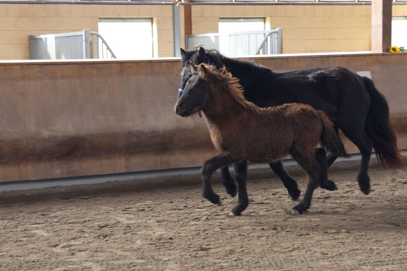 We have a foal/weanling for sale. He was shown at our foal evaluation and did very well. Conformation: 7.90 Interior: 8,10 gaits: 7,90 Overall: 7.94 Judges' verdict: Highly upright foal with equal amounts of trot and tölt, quick reactions and good willingness to move with good movement energy and expression. He will be weaned next month. Please contact us.