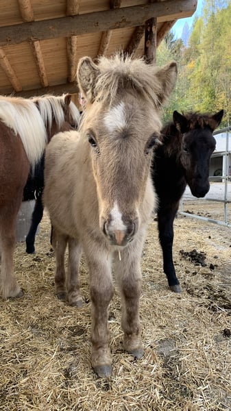 Tignir vom Burgstall vereint eine außergewöhnliche Optik mit vielversprechendem Bewegungspotenzial. Seine seltene Rappfalbwindfarbe mit Stern und Schnuppe macht ihn zu einem echten Blickfang – doch nicht nur optisch weiß dieser junge Hengst zu überzeugen. Als Viergänger zeigt Tignir bereits im Freilauf eine sehr gute Tempovarianz und bringt damit beste Voraussetzungen für eine weitere Förderung im Sport oder in der Zucht mit. Sein Wesen ist ebenso überzeugend wie seine Gänge: Tignir ist freundlich, neugierig und respektvoll im Umgang. Er zeigt sich aufmerksam, menschenbezogen und lernt schnell. 🐴 Ausbildungsstand & Handling Tignir ist altersgerecht aufgewachsen und kennt bereits: • Halfterführigkeit • Anbinden • Hufpflege • Tierarztbesuche • Sprühflasche Er wurde liebevoll im Herdenverband auf großzügigen Flächen großgezogen, was sich in seinem ausgeglichenen Charakter widerspiegelt. 🩺 Gesundheit & Haltung • Regelmäßig geimpft und entwurmt • Ekzemfrei • Robuste, naturnahe Aufzucht 🌱 Perspektive Tignir ist ein spannendes Nachwuchspferd mit viel Entwicklungspotenzial. Ob für den Turniersport oder als Zuchthengst – er bringt die nötigen Anlagen und den Charakter mit, um seinen Weg erfolgreich zu gehen. 👉 Wenn du ein besonderes Islandpferd suchst, das Talent, Charakter und Ausstrahlung vereint, könnte Tignir genau der Richtige sein. Bei Interesse oder für weitere Informationen freuen wir uns über deine Nachricht.