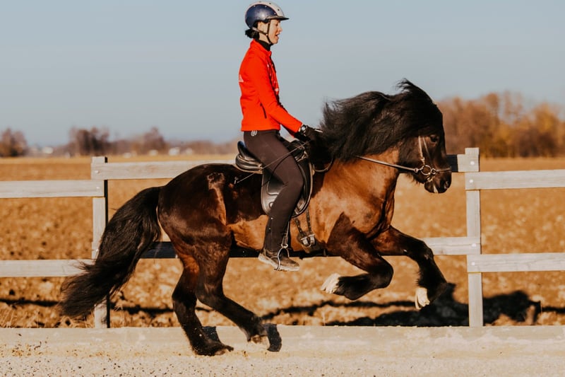 Der eindrucksvolle Hengst IS2020184505 - Eyvinur frá Skíðbakka III hat viel mehr zu bieten als nur seine Black Beauty Erscheinung! Seine besondere Stärke ist auffallend flüssiger, taktklarer Tölt mit guter Tempovarianz und deutlichem Talent fürs Zügelüberstreichen. Die 10 für Tölt seines Vaters Ljúfur frá Torfunesi und die 9 für Tölt seiner Mutter machen sich an dieser Stelle wohl nachdrücklich bemerkbar... Bergauf gesprungener Galopp, schwungvoller Trab und sicherer Rennpass ergänzen das gleichmäßige Fünfgang-Package, das Eyvinur mit viel Ausstrahlung präsentiert. Dabei kommt er aufgrund seines einfachen Mindsets und seines mittleren Vorwärts für viele Reiter/innen in Frage - egal, ob als hochqualitatives Spaßpferd oder - bei weiterer Förderung - als Sportpartner. Und abgesehen vom Reiten? Im Umgang ist Eyvinur ein großer Kuschler und genießt es Streicheleinheiten und Aufmerksamkeit zu bekommen. www.gratzl.co.at