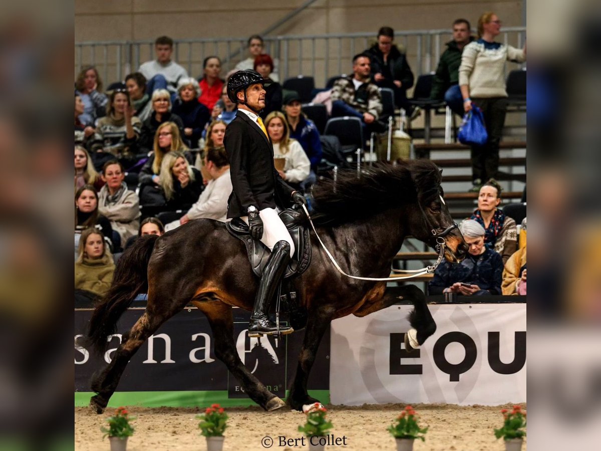 Stjörnustæll frá Dalvík(Fizo 8,4 - Reiteigenschaften 8,5) *Deckhengst 2024* *15.06.2006 V: Rammi frá Búlandi (Fizo: 8,18) VV: Keilir frá Miðsitju (Fizo 8,63) M: Saga frá Bakka (Fizo Gebäude: 8,23) Dieser außergewöhnliche Hengst wartet darauf, eure Stuten zu begrüßen! Viel natürlicher Tölt mit hochweiten Bewegungen, elastischer Trab, extrem guter Galopp und zudem noch sehr guter Pass- dafür steht Störnustæll! Nicht nur seine beeindruckende Mechanik macht ihn besonders, auch sein tolles Gebäude und seine gigantische Abstammung lassen keine Wünsche offen! Stjörnurstæll lief bei den Weltmeisterschaften T2, F1 und PP1. Er verbucht zahlreiche Siege, unter anderem auf dem Islandsmot im Fünfgang mit 7,37 Punkten und bei den norwegischen Meisterschaften in der T2 mit 8,1 Punkten! Stjörnustæll ist ein ausgeglichener, ruhiger Hengst der sich im Umgang stehts vorbildlich verhält- so ist er auch super lieb mit seinen Stuten. 2025 konnte Stjörnustæll s Sohn Hannibal vom Recherbusch das beste Fohlen in ganz Deutschland werden! Stjörnustæll deckt bei uns an der Hand- weitere Informationen und unsere Deckbedingungen gibt es unter www.islandpferde-recherbusch.de .