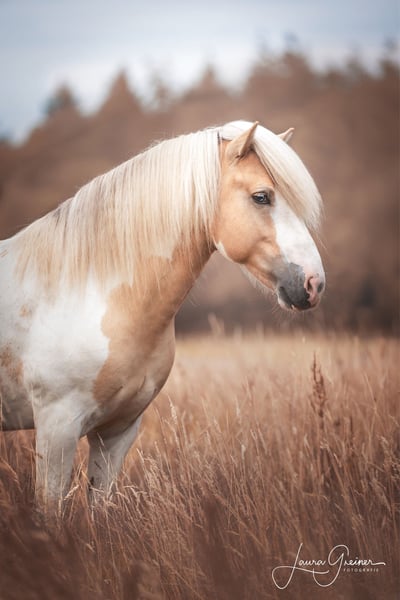 IS2020158980 - Glæsir frá Hjarðarholti Du suchst die EIERLEGENDE WOLLMILCHSAU als Deckhengst❓ Groß, absolut brav, einwandfreier Charakter, 5-Gänger, beide Eltern hoch FIZO geprüft, Materialprüfung 8,12 gesamt und als I-Tüpfelchen die einzigartige Farbkombination: Isabellfalbschecke (reinerbig gescheckt) mit blauen Augen. Diese Farbkombination ist nur 2x weltweit in WF registriert (mit seinem Sohn aus 2024) Hier ist er: IS2020158980 – Glæsir frá Hjarðarholti 4-jährig bereits 1,52m groß Abstammung: V: Ísak frá Þjórsárbakka (8,61 gesamt als Viergänger!, 8,84 fürs Gebäude WELTMEISTER 2025 in der YR V1 und T1) - 9,5 für: Tölt und Form unterm Reiter - 9,0 für: Charakter/Gehwille und Galopp - 8,5 für: Schritt und Trab VV: Herkúles frá Ragnheiðarstöðum (8,46-als Viergänger!) VVV: Álfur frá Selfossi (8,47) M: Grímsey frá Arabæ (7,98) - 9,0 für: langsamen Tölt - 8,5 für: Charakter/ Gehwille und Rennpass - 8,0 für: Tölt, Trab und Form unterm Reiter MV: Laxdal frá Efri-Rauðalæk (8,05) MVV: Galsi frá Sauðárkróki (8,44, 10 für Rennpass!) Glaesir ist ein 2020 geborener Isländer Hengst, der im Januar 2023 importiert wurde und am 21.04.2023 ELITE geprüft wurde in Münster Handorf mit: ❗️Gesamt: 8,12❗️ Glaesir hat einen einwandfreien Charakter und steht problemlos neben seinen rossigen Deckstuten mit seinen besten Kumpels zusammen im Paddock und auf der Weide. Er ist für ein Jungpferd extrem gut bemuskelt und weit entwickelt, sodass er als einziger 3-jähriger Hengst deutschlandweit die 100% bei der Entwicklung bei seiner Materialprüfung 2023 geknackt hat. Er ist absolut schreckfrei, kennt bereits Traktoren, LKW´s und Autos und lässt sich von nichts aus der Ruhe bringen. Glaesir wird nun auf das Leben als Reitpferd vorbereitet und sticht vor allem durch seine Motivation und Lernfähigkeit heraus. ALLE Fohlen haben eine Sonderlarkierung, wie: (Erdfarb(falb)schecke, Isabell(falb)schecke, Mausfalbschecke mit blauen Augen etc.). 2026 werden 15 Fohlen von ihm erwartet. Alle Stuten sind direkt tragend geworden. Hier mal zwei Beispiele seines ersten Jahrgangs 2024: Hilma vom Habichtstein: 8,2 Gebäude, 8,0 Charakter und 8,1 Gänge (8,11 gesamt) und zweitbestes Stutfohlen in Hessen Vinur vom Skogahof: 8,1 Charakter, 8,1 Gebäude und 7,9 für die Gänge = 8,0 gesamt, zweitbestes Hengstfohlen in Weser-Ems und somit Elite beurteilt. Er deckt 2026 wieder an der Hand in Thuine (49832). Die Plätze sind wieder gering. Die Stuten werden ausschließlich an der Hand gedeckt. Die Decktaxe beträgt 2026: 1000€, darunter 300€ Anmeldegebühr. Erst nach Abholung der Stute ist der Rest des Betrages fällig. Bei mehreren Stuten, sowie Elite Stuten sind Sonderkonditionen möglich. Da Glaesir 2026 FIZO laufen wird, deckt er erst ab Juli. Nach der FIZO wird die Decktaxe angepasst. Bei Fragen gerne melden. Auf unserem Insta Account: "Islandpferde_vom_skogahof" gibt es tägliche Einblicke und Updates zu unseren Deckhengsten.