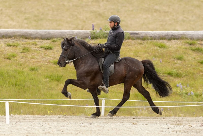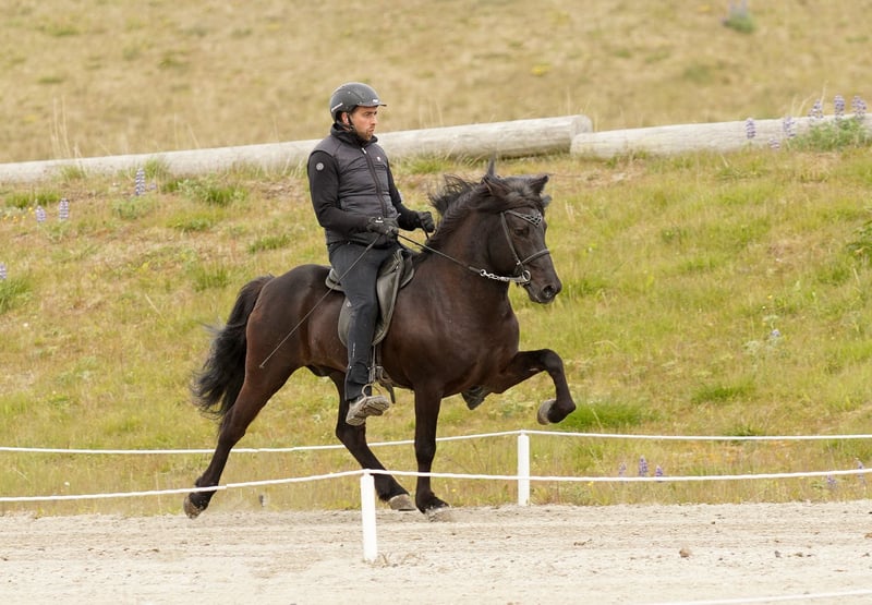 Merkúr frá Gásum FEIF ID: IS2019164001 Rappe ohne Abzeichen mit viel Langhaar Fünfgänger FIZO geprüft✅ Merkúr´s Abstammung ist durchgehend geprüft, sowie auch er. Sein Zuchtwert/BLUP liegt aktuell bei grandiosen 120‼️ Merkúr konnte eine Gebäudenote von 8,40 erreichen. Hier gab es die 9,0 für Rückenlinie-Kruppe und Mähne-Schweif. Die 8,5 erhielt er auf Widerrist-Schulter, Proportionen und Hufe. Seine Reiteigenschaften mit 8,32 wurden mit einer 8,5 für Tölt, Trab, Pass, Rittigkeit und für die Form unter dem Reiter bewertet. Das ergibt sechsjährig eine Gesamtnote von 8,35. Abstammung: M: Magdalena frá Kommu 8,35 VM: Markús frá Langholtsparti 8,36 MM: Melkorka frá Kommu 7,72 V: Skaginn frá Skipaskaga 8,73 VV: Álfur frá Selfossi 8,46 MV: Assa frá Akranesi 8,31 Merkúr ist ein typvoller, ausdrucksstarker Hengst, mit hervorragendem Charakter und viel Präsenz. Schon in sehr jungem Alter überzeugte er mit fünf klar getrennten Gängen, mit viel Raumgriff und Takt. Im Tölt punktet er mit Tempovarianz, hochweiten Bewegungen und ist gleichermaßen T1 als auch T2 geeignet. Trab ist schwungvoll mit viel Raumgriff. Galopp gut gesprungen und taktklar. Pass ist besonders hervorzuheben, denn dieser ist von sehr guter Qualität und extrem einfach zu reiten. Aufrund seines einwandfreien Charakters lässt er sich immer legen und zurücknehmen. Dieser lackschwarze Hengst vereint Leistungsbereitschaft und ein ausgeglichenes Wesen - genau das, was man sich in der eigenen Zucht wünscht. Egal ob du ein Sportpferd oder ein Freizeitpferd züchten möchtest, Merkúr vereint beides. Ihn selbst können ungeübte Reiter reiten, Kinder führen und dabei immer ein sicheres Gefühl haben. Seine Nachzucht bisher punktet mit harmonischem Körperbau, guter Gangveranlagung und einwandfreiem Charakter.
