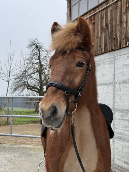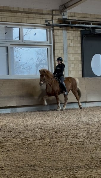 Schweren Herzens verkaufen wir unsere Halldóra vom Paffenbuck 2. Sie ist ein tolles Pferd mit schönem Exterieur, hat gute Gänge und einen lieben, aber dennoch anspruchsvollen Charakter. Sie ist sehr robust und steht bei uns bei allen Wetterlagen ohne Decke. Als Zusatzfutter bekommt sie nur Mineralien. Sie hat ihr Leben lang im Offenstall gelebt und hat sich dort sehr sozial gezeigt. Momentan steht sie in der Box, da sich keine andere Möglichkeit ergeben hat. Sie war bei uns nie krank. Sie steht brav beim Putzen und beim Hufschmied. Hänger fährt sie super, jedoch könnte man das Einsteigen noch etwas üben. Vom Charakter her ist sie ein liebevolles Pferd, das gerne kuschelt und mit einem in der Sonne schläft. Wichtig ist jedoch, dass der neue Reiter von Anfang an klar mit ihr ist. Sie neigt etwas dazu, selbst entscheiden zu wollen. Das kann man aber gut klären, wenn man sie von Anfang an nicht entscheiden lässt und ihr verständnisvoll, aber klar zeigt, was man von ihr möchte. Wenn man das erreicht, würde sie sehr viel für einen machen. Für den Sport im Sport-B-Bereich ist sie interessant. Sie hat einen tollen Tölt, der einem ein unglaubliches Gefühl gibt. Ihr Trab ist ebenfalls gut. Sie hat Turniererfahrung, ist aber bisher nur mit einem kleinen Mädchen in den Prüfungen gestartet. Schritt und Galopp muss man sich im Moment noch etwas erarbeiten. Aktuell ist sie nicht richtig im Training, sie kommt viel auf Ausritte mit und macht Freiarbeit auf dem Platz. Wir sehen sie auch sehr in der Zucht. Sie ist ein Prämienfohlen aus Bayern und hat, wie bereits erwähnt, ein tolles Exterieur sowie schöne Bewegungen. Ihr Vater ist Þróttur frá Hvalnesi. Seit wir sie 2020 gekauft haben, durfte sie regelmässig Beritt geniessen. Bei Fragen und/oder Interesse bin ich unter +41 79 571 68 00 zu erreichen.