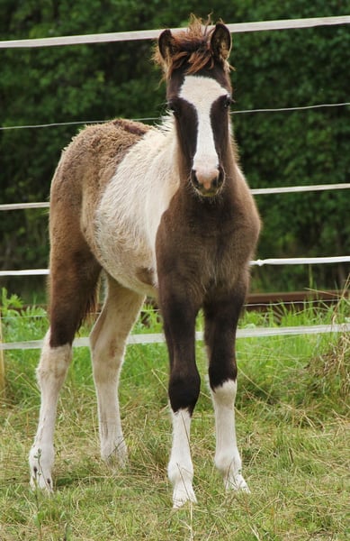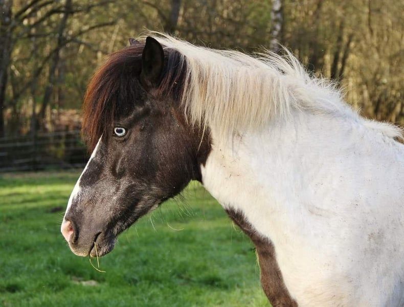 Genesis sucht ihren Menschen der sie weiter ausbildet und trainiert oder auch Zuchtinteresse hat. Genesis wurde letztes Jahr angeritten, stand zwischendurch wegen Zeitmangel mit längerer Pause auf der Weide und wird seit kurzem wieder geritten. Davor war sie in der Zucht, überzeugte mit guter Nachzucht und ist selbst Stutbuch 1 eingetragen mit 7,9 für Gang und Exterieur. Dadurch ist sie reiterlich noch sehr wenig genutzt und auch von der Zucht nicht ausgeleiert, da sie ein gutes Bindegewebe mitbringt. Aktuell ist sie etwas zu dick durch die lange Standpause. das Gewicht sollte mit kontinuierlichem Training sich aber wieder bessern, zumal sie mittlerweile schon etwas mehr Figur durchs Reiten bekommen hat. Genesis ist Fünfgänger, sie zeigt Freilaufend überwiegend ihre gut und sicher mit viel Raumgriff und schönen Bewegungen ausgeprägten Grundgänge. Zeitweilig auch Tölt. Unter dem Sattel hat sie einen immer taktklaren Schritt und auch der Trab ist in der Regel gut abrufbar. Auch Wechsel zwischen Tölt und Trab lassen sich sehr einfach mit wenig Hilfen reiten. Mittlerweile ist sie schon sehr einfach anzutölten benötigt aber im Tölt noch etwas Unterstützung und Training um diesen auf längeren Strecken taktrein zu halten. Man merkt deutlich wenn sie ermüdet da sie dann von sich aus versucht den Trab zu wählen. Daher wird sie normalerweise derzeit nur kurze Strecken mit Pause getöltet um erstmal Muskulatur und Ausdauer aufzubauen. Derzeit arbeite ich sie nicht im Galopp da ihre Kondition dazu noch nicht langt, auf ebener Strecke schafft sie den Galopp mit Reiter noch nicht und kann dann in Pass oder Kreuzgalopp fallen. Bergauf hat sie es deutlich einfacher den Takt im Galopp zu halten, lässt sich da auch gut anschieben und springt dann auch sehr schön den Galopp. Mit mehr Training und Gymnastizierung gehe ich davon aus das sie den Galopp auf ebener Strecke auch irgendwann sehr gut unter dem Reiter meistern wird. Sie kennt die Hilfen zum Pass legen noch nicht, als sie mir einmal in den Pass gefallen ist konnte ich sie darin aber Problemlos beschleunigen so das es deutlich war das sie auch darin sicher nicht untalentiert ist, ihr aber derzeit da auch einfach noch die Kraft und Kondition fehlt. In der Regel reagiert sie fein auf Hilfen ohne sensibel zu sein, zum Anreiten, Antraben und Antölten langt meist schon die Stimmhilfe. Auch reagiert sie normal immer direkt auf die Hilfen zum langsamer oder stehen bleiben, da ich sehr großen Wert darauf lege das ein Pferd eine Bremse hat. Genesis kann ein etwas spritziges Temperament haben und ist deswegen und auch wegen ihres Ausbildungsstandes derzeit nur für erfahrene selbstsichere Reiter geeignet die sie noch weiter Ausbilden und Fördern möchten. Zurzeit wird sie alleine ins Gelände geritten. Genesis ist 2013 bei mir geboren, seither gesund, Ekzemfrei, geimpft und regelmäßig Entwurmt. Sie deckt mich sehr gut ab auch wenn sie selbst nur ein mittleres Maß hat, durch ihr kompakt harmonisches Gebäude, ihre Ausstrahlung und Aufrichtung wirkt sie unter dem Reiter größer. Sie bringt stabile Beine und ein eher quadratisches Gebäude und ein gut angesetzter Hals mit, dadurch trägt sie ohne Probleme einen Erwachsenen bis 75 kg. Genesis lässt auch bezüglich Abstammung keine Wünsche offen, als Enkelin des berühmten Glampi frá Vatnsleysu. Zusätzlich finden sich noch Adam frá Ásmundarstöðum und Hrafn frá Holtsmúla in ihrer Abstammung. Genesis selbst ist eine sehr hübsche Scheckstute mit Blesse und einem braunen Menschenauge und einem blauen Auge. Genetisch bestätigt ist das sie reinerbig Schwarz ist d.h. bei Zuchteinsatz kann sie niemals ein fuchsfarbbasiertes Fohlen bekommen. Durch ihren Helmscheckvater hat sie auch sicher noch das Splash-Gen geerbt und kann daher jeweils zu 50 % noch das Splash-Gen wie auch das Tobiano-Gen vererben. Gerne kann sie von einem erfahrenen Reiter Probegeritten werden und wenn alles passt auch zeitnah in ein neues Zuhause umziehen. Das Video ist ganz aktuell. Fotos ihrer Nachkommen als letztes in der Bildergalerie. Eine Aku kann gerne vom Käufer veranlasst werden. Bei echtem Interesse freue ich mich auf Nachricht. Aufgrund von schlechten Erfahrungen kein Verkauf in die Schweiz.