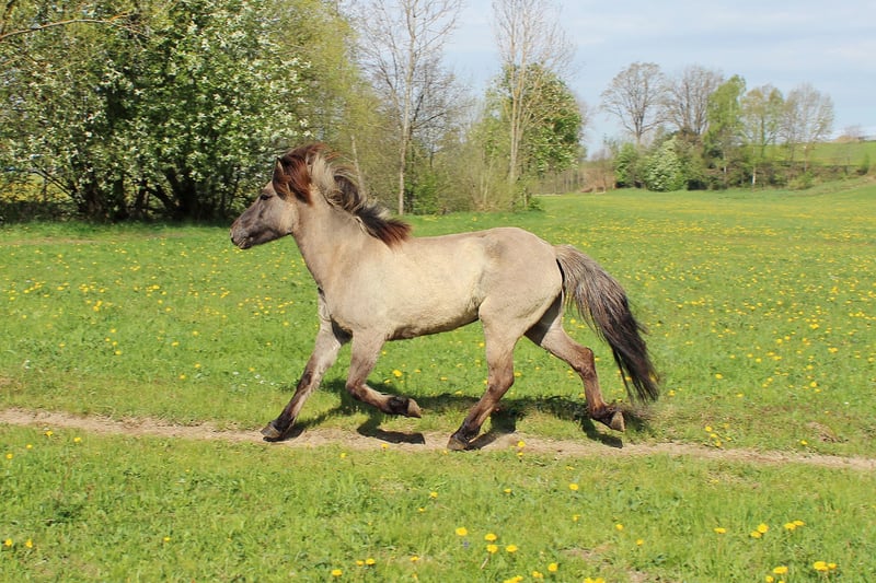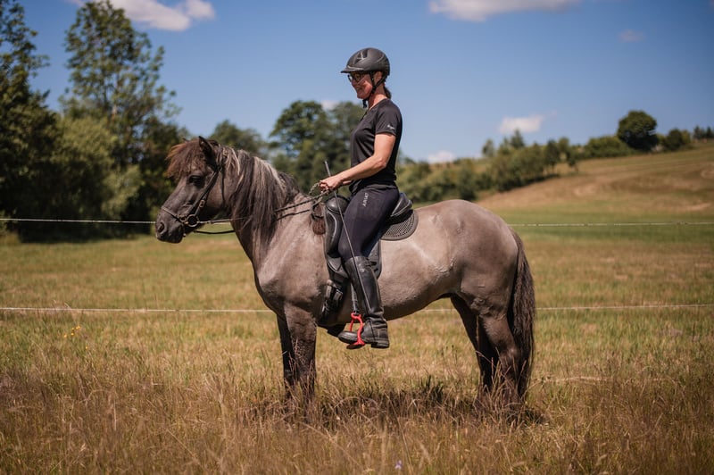 Our 14-year-old Icelandic mare in the rare color of gray dun is looking for a new home with caring handling and horse sense. She is truly a gem. With a very balanced gait, expressive tölt, and plenty of natural tölt, she impresses both on the ground and under saddle. She has spent many years as a successful broodmare and has already proven her quality through her offspring. Due to her breeding career, she has not yet been fully trained under saddle, which presents a wonderful opportunity to shape her further according to her new owner’s needs as a true partner horse. Characteristics: curious, friendly, fearless, very attentive and resilient, solid basic training, with great potential for further development. Important to know: Due to her summer eczema, she requires appropriate care and a home that can handle this challenge with love and responsibility (e.g., eczema rug, pasture management, sheltered stable area). The sale price has been adjusted accordingly to reflect this. Pedigree: Sire: Heljar von Birkenlund (VV: Ofeigur fra Flugumyri) Dam: Folda von Bärenfilz (MV: Stigandi fra Saudarkroki) If you are looking for a characterful, gait-loving Icelandic horse with lots of charm and soul – and are willing to provide a little extra care – she will be a loyal companion with great potential.