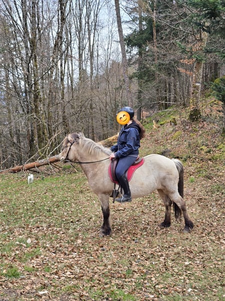 Vends superbe jument islandaise pleins papiers, née en France en 2011, très gentille, une assurance vie pour les enfants et les cavaliers débutants! Très confortable, elle a un très bon pas, et avec un cavalier peu sûr de lui, elle marchera doucement derrière alors qu'avec un cavalier plus expérimenté elle aura plaisir à tracer devant. Elle sort seule ou en groupe, elle est volontaire et toujours de bonne humeur, elle sait aussi être promener en longe avec un cheval monté. Il nous arrive de la lâcher alors et elle nous suit tranquillement. Blomey passe partout et n'a peur de rien. Elle vient volontiers au portail quand on l'appelle, embarque et voyage très facilement en van ou en camion. Nous nous en séparons car notre fiston a grandi et peut a présent monter nos plus jeunes chevaux, ce qui nous permet de réduire un peu nos effectifs (6 chevaux actuellement). Elle a déjà pouliné chez son éleveur (elle n'a pas fait plusieurs maisons, nous l'avons cherché chez son éleveur quand elle avait 9 ans). Concernant les allures, elle a un très bon pas, très actif, (nous habitons en montagne). Elle a un très bon tölt, confortable (ce ne sont cependant pas des allures de compétition). Elle trotte aussi très bien. Elle a un petit galop confortable et rassurant. Nous l'avons déjà vu filer a l'amble volant cependant c'était par hasard car nous n'avons jamais travaillé cette allure. Elle est ferrée et n'a jamais eu aucun souci de santé. Pas de dermite. C'est une jument très attachante, elle pourra faire le bonheur d'un jeune cavalier, elle est respectueuse et montée à présent en mors simple. Elle est a jour de ses vaccins et régulièrement vermifugée. Wir sprechen deutsch