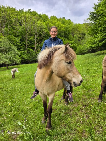 Verkaufe eine wunderschöne isländische Stute mit Papieren, geboren in Frankreich im Jahr 2011. Sehr liebenswert, eine wahre Lebensversicherung für Kinder und Reiterinnen und Reiter, die noch am Anfang stehen! Sie ist äußerst bequem zu reiten, besitzt einen sehr guten Schritt und zeigt sich bei einem unsicheren Reiter eher vorsichtig, läuft dann langsam hinterher. Mit einem erfahreneren Reiter macht sie jedoch großen Spaß, vorneweg zu traben. Sie geht sowohl alleine als auch in der Gruppe aus, ist willig und stets gut gelaunt. Außerdem lässt sie sich auch gut an der Longe führen, während ein Reiter auf dem Rücken sitzt. Manchmal lassen wir sie auch frei laufen, dann folgt sie uns ruhig. Blomey ist unerschrocken und geht überall hin. Sie kommt gerne zum Tor, wenn man sie ruft, besteigt sich problemlos und reist sehr bequem im Anhänger oder LKW. Wir trennen uns von ihr, weil unser Sohn erwachsen ist und jetzt unsere jüngeren Pferde reiten kann, was uns erlaubt, unsere Herde etwas zu verkleinern (aktuell 6 Pferde). Sie hat bereits bei ihrem Züchter gedeckt (sie hat nicht mehrere Besitzer gewechselt, wir haben sie bei ihrem Züchter gesucht, als sie 9 Jahre alt war). Was die Gänge betrifft, so hat sie einen sehr guten, aktiven Schritt (wir wohnen in den Bergen). Sie besitzt einen sehr guten Tölt, bequem, wobei es keine Turniergänge sind. Auch das Trabreiten klappt sehr gut. Der Galopp ist klein, bequem und beruhigend. Wir haben sie schon einmal im fliegenden Galopp laufen sehen, allerdings nur zufällig, da wir diese Gangart nie gezielt trainiert haben. Sie ist beschuht und hatte noch nie gesundheitliche Probleme. Kein Hautekzem. Sie ist eine sehr liebenswerte Stute, die einem jungen Reiter viel Freude bereiten kann. Sie ist respektvoll und wird momentan mit einem einfachen Gebiss geritten. Sie ist aktuell geimpft und regelmäßig entwurmt. Wir sprechen Deutsch.