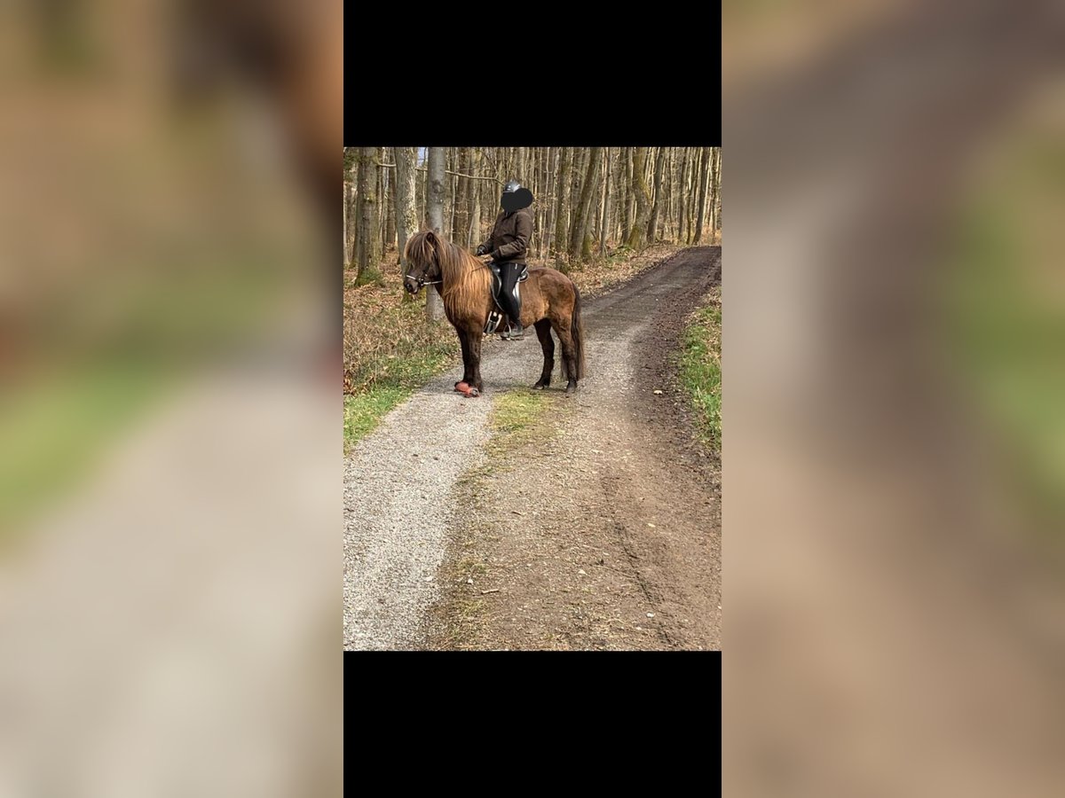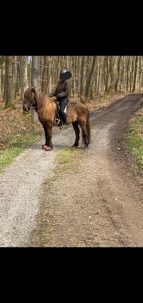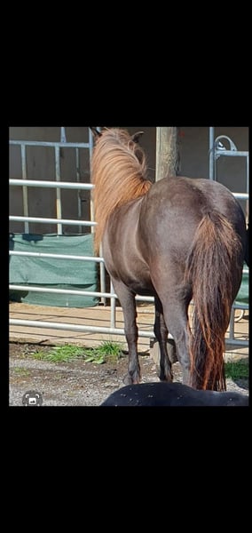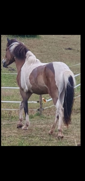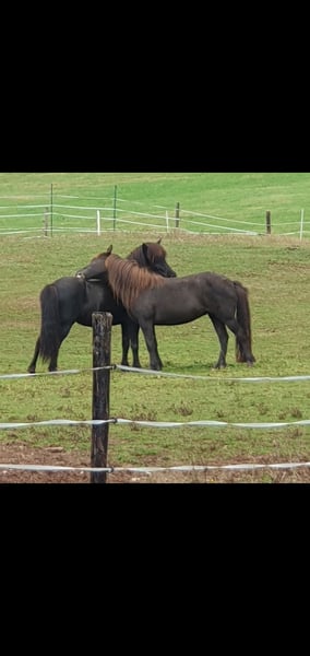 We are selling our pregnant Icelandic mare. She is very beautiful with a long mane and very gentle. Age: 15 years Gait: 5-gaited Height: 134 cm at the withers No eczema, no laminitis, no hay fever allergies, farrier- and loading-friendly. We have bred two wonderful foals with her: a 2-year-old pinto mare foal, full-bodied, sired by a pinto stallion, from whom she is also pregnant again, and a 4-year-old buckskin mare, both sweet and easy to handle. She has always been ridden before and between foalings.