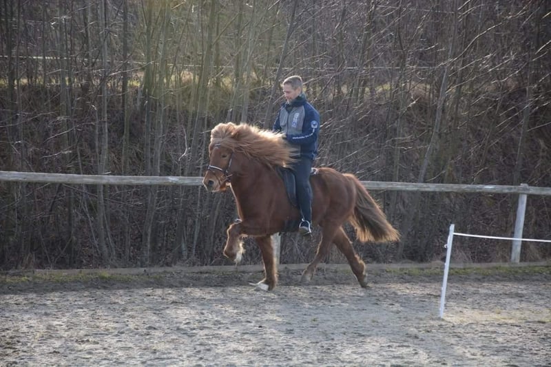 AT2009220959 Leiding is 16 jaar oud en een echte parel. Een plezier voor elke fijne ruiter en een absolute leermeester voor kinderen en jongeren. Ze is zeer gevoelig in de zin van lichte rijbaarheid, heel fijn, reageert attent op zit, ademhaling en stem. Ondanks haar gevoelige karakter is ze echter absoluut bombproof. Leiding heeft nergens angst voor en schrikt nergens van, ook niet van verkeer, tractoren, sneeuwploegen of treinen – alles geen probleem. Ze loopt altijd en overal doelgericht vooruit en is een rots in de branding. Zowel alleen als in een groep. Wat gangverdeling betreft, is ze een zeer evenwichtig vijfgangpaard. Ze is heel gemakkelijk te rijden in de tölt, heeft een veilige draf en een comfortabele stap. Galop is meer gelopen, maar in het terrein en vooral bergop is ze goed te rijden. Leiding beschikt over een uiterst betrouwbare sprintpassage, die ze graag en ontspannen in de tölt uitvoert. Bij volwassen ruiters gaat ze snel en ijverig vooruit, kinderen behandelt ze met bijzondere voorzichtigheid en let ze goed op. Ook in de omgang is ze absoluut kindvriendelijk. Ze laat zich geduldig leiden, poetsen, hoeven uitkrabben, manen borstelen – het maakt haar niets uit als de borstel op de grond valt of als het kind naast haar met de stoel omvalt. Dressuurmatig is ze goed opgeleid en een echte leermeester voor leerlingen: op kleinste hulp reageert ze met schouder binnen, kruispas binnen. Ze kan traversalen in stap en tölt, schouderbinnen ook in draf. Helaas heeft ze een hooistofallergie en heeft ze een stal nodig die geschikt is voor allergieën. Met gestoomd/nat hooi of hooilage/gisthooi is ze volledig klachtenvrij. Omdat ze zeer stevige, compacte en vrij nauwe hoeven heeft, krijgt ze heel snel hoefstraalziekte. Goede, regelmatige verzorging, onderhoud en droge huisvesting zijn daarom noodzakelijk. Daarentegen laat ze zich uitstekend barhuf rijden: stap, draf, tölt en sprintpassage vormen geen probleem op blote hoeven, alleen bij galop op harde ondergrond vindt ze het wat moeilijker zonder hoefbeslag. Als er een perfect match ontstaat – een familie die onze parel net zo liefheeft en waardeert als wij – met optimale huisvestingsomstandigheden, kunnen we een verkoop overwegen. Meer informatie, foto’s en video’s op aanvraag. Een bezichtiging is altijd mogelijk.