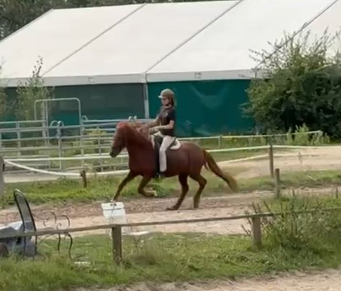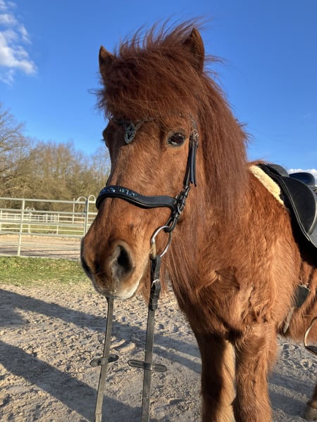 Rasse: Isländer Name: Pandra fra Minniborg Farbe: Rotfuchs Alter: 20 Jahre Stockmaß: 134 cm Über Pandra: Unsere liebe Pandra ist eine hübsche, zierliche Islandstute mit einem großen Herz und viel Charme. Sie überzeugt mit mittlerem bis hohem Temperament, ist dabei stets arbeitswillig, gehorsam und gut regulierbar. Für uns war sie immer ein echtes Verlasspferd: Geländeritte, Schmied, Zahnarzt, Duschen, Verladen, Begegnungen mit Hunden, ein Ritt zum Supermarkt, Traktoren oder Straßenverkehr – Pandra macht alles geduldig mit. Durch ihre Vergangenheit als Reitschulpferd ist sie familien- und kindertauglich, sie hat aber auch Erfahrung und Erfolge im Sport gesammelt. Ausbildung & Können: • 5-Gängerin, taktklar in allen Gängen • Lässt sich leicht über die Stimme regulieren • Dressurausbildung bis A-Niveau • Erfahren an Longe, Doppellonge sowie in Freiarbeit und Bodenarbeit • Sicher und entspannt im Gelände bei genügend Souveränität Gesundheit • Keine bekannten Vorerkrankungen oder Lahmheiten • Mittelschweres Sommerekzem, mit passender Decke (Boett) und Pflege vollständig symptomfrei. Besonders geeignet für Standorte in Küstennähe. Herkunft & Haltung • Isländisch gezogen, seit 4 Jahren in Deutschland • Seit 2023 im Privatbesitz, davor als Reitschulpferd im Einsatz Zubehör inklusive • Gut angepasster Sattel • Trense und Halfter • Maßgeschneiderte Ekzemerdecke (Boett) ⸻ Warum wir uns trennen Schweren Herzens suchen wir für Pandra ein neues Zuhause: Meine Tochter geht ab diesem Jahr aufs Internat – und leider dürfen „Internatspferde“ dort nicht mitgenommen werden . Wir wünschen uns daher für Pandra einen Platz, wo sie weiterhin gefördert wird und ihre zuverlässige, liebevolle Art geschätzt wird Wer eine erfahrene, vielseitige und zuverlässige Islandstute sucht, findet in Pandra eine treue Partnerin. Bei Interesse freuen wir uns über eine Nachricht und ein Kennenlernen