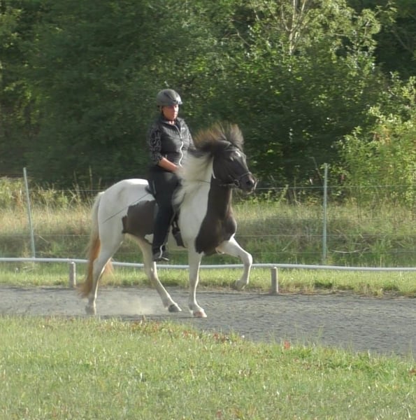 **Verkaufsanzeige: Wunderschöne Islandpferd-Stute zu verkaufen!** Wir suchen ein neues Zuhause für unsere bezaubernde Islandpferd-Stute! **Merkmale:** - **Rasse:** Islandpferd - **Geschlecht:** Stute - **Geburtsjahr:** 2021 - **Farbe:** Rappschecke (obwohl Braunschecke im Papier steht) - **Stockmaß:** 138 cm, wächst noch ein wenig - **Gang:** Ausgezeichnete Gangarten, kann bei weiterer Ausbildung auch Turnier gehen Diese charmante Stute besticht durch ihr freundliches Wesen und ihre Neugier. Sie ist gut im Umgang und eignet sich sowohl für erfahrene Reiter als auch, bei weiterer Ausbildung, für eine Familie. Die Stute hat bereits einiges an Erfahrungen im Gelände gesammelt und zeigt sich dabei stets brav und gelassen. Ijre Nervenstärke ist herausragend. Ihre Scheckenfarbe macht sie zu einem echten Hingucker! Bei Interesse melden Sie sich gerne. Es gibt auch ein gerittenes Video.