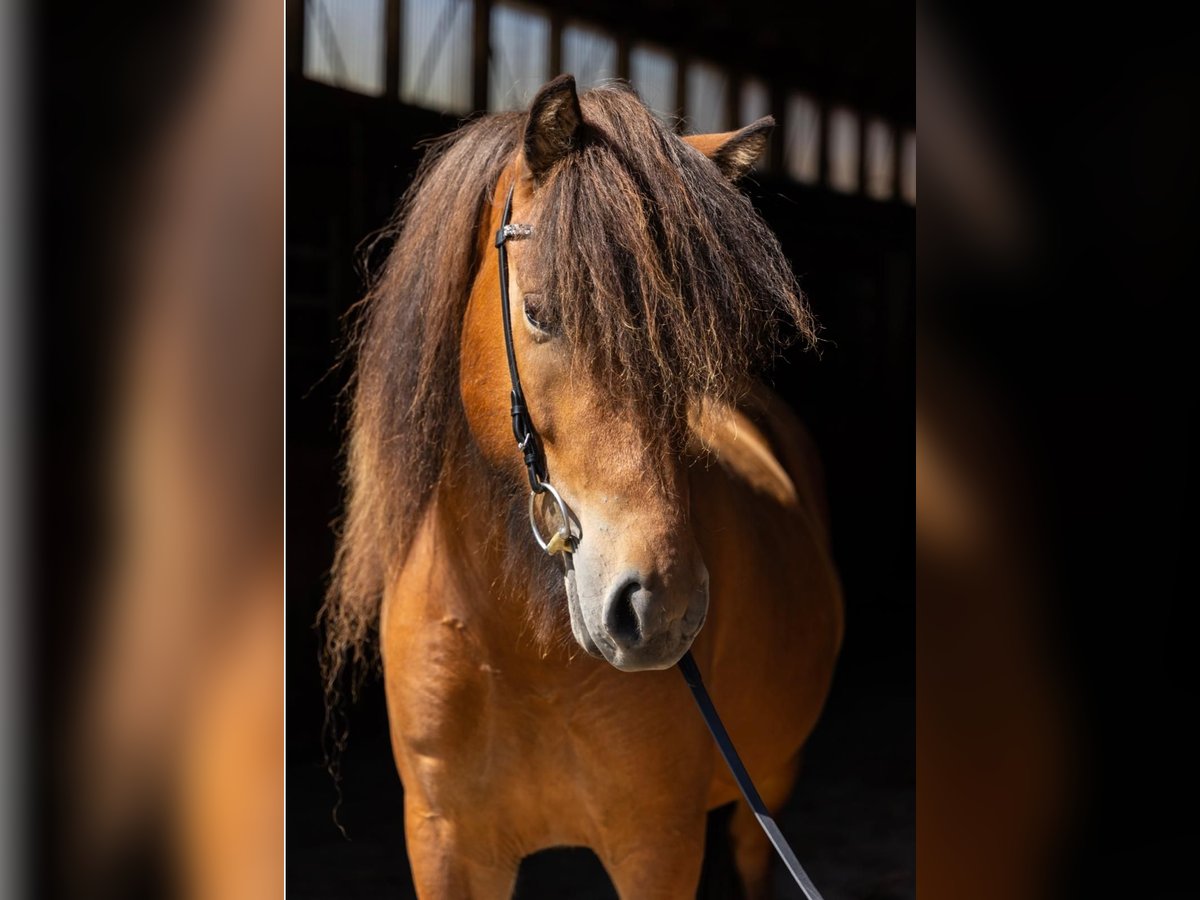 Byssa vom Kranichtal ist eine große, charmante und sehr typvolle Naturtölterin mit viel Ausstrahlung und einem besonders freundlichen Wesen. Sie befindet sich aktuell in schonender Ausbildung und zeigt sich dabei sehr gelassen, nervenstark und kooperativ. Byssa überzeugt durch ihre Rittigkeit, ihr natürliches Töltvermögen und ihre angenehme Art im täglichen Umgang. Sie ist eine Stute mit viel Qualität, die bei weiterer Ausbildung auch im Sport interessant sein wird. Exterieur: Byssa ist eine großrahmige, langbeinige und elegante Stute mit gutem Fundament und harmonischem Körperbau. Sie verfügt über eine schöne Oberlinie, eine gut bemuskelte Hinterhand und deckt durch ihre Größe auch größere Reiter sehr gut ab. Besonders auffallend ist ihr sehr schöner, dichter Behang, der ihr zusätzlich viel Ausdruck verleiht. Charakter: Byssa ist eine sehr freundliche, menschenbezogene und feinfühlige Stute mit klarem Kopf. Sie zeigt sich aufmerksam und sensibel gegenüber ihrem Reiter, ohne dabei nervös zu sein. Ihr ruhiges Temperament, ihre Nervenstärke und ihre Kooperationsbereitschaft machen sie sowohl im täglichen Umgang als auch unter dem Sattel zu einem sehr angenehmen Partner. Sie arbeitet motiviert mit und möchte alles richtig machen. Gänge: Byssa ist eine Naturtölterin mit viel natürlichem Tölt und guter Bewegungsqualität. Der Tölt ist bequem zu sitzen und sicher abrufbar. Schritt, Trab und Galopp sind gut angelegt und lassen sich gut regulieren. Mit weiterer Ausbildung ist sie sowohl für den gehobenen Freizeitbereich als auch für den Sport interessant. Ausbildungsstand: Byssa hat ihre Grundausbildung abgeschlossen. Sie lässt sich sicher auf dem Reitplatz sowie im Gelände reiten, alleine und in der Gruppe und zeigt sich dabei aufmerksam und kooperativ. Rückwärtsrichten und Schenkelweichen sind ihr bereits bekannt und werden sicher ausgeführt. Sie reagiert fein auf die Hilfen, ist lernwillig und arbeitet motiviert mit, sodass sie sich bei weiterer Ausbildung sehr gut weiterentwickeln kann und auch für den Jugendsport interessant ist. Wer passt zu mir: Byssa eignet sich für Reiter, die eine große, freundliche und fein zu reitende Naturtölterin suchen. Durch ihr gutes Wesen und ihre Nervenstärke ist sie auch für weniger erfahrene Reiter und Reiterinnen, sowie für Jugendliche sehr gut geeignet, bietet aber gleichzeitig genügend Qualität für ambitionierte Freizeitreiter und für den Jugendsport. Aufgrund ihrer Größe und ihres angenehmen Temperaments deckt sie auch größere Reiter gut ab. Zudem ist sie auch für die Zucht sehr interessant. Vater: Merkur ist ein bildschöner großer Fünfganghengst mit hoch-weiten Bewegungen. Er konnte bereits fünfjährig das Zuchtchampionat in Zachow gewinnen und überzeugte dann ein Jahr später noch mit seiner hohen FIZO, bei der er mit der Gesamtnote 8,34 (Gebäude 8,48 und Reiteigenschaften 8,24) Elite gesamt und in beiden Teilbereichen wurde. Sein liebevoller Charakter kombiniert mit seinem sehr guten Gebäude und seinem herausragenden Tölt, sieht man bereits in seinen Nachkommen. Merkur wurde sechsjährig von einem 13-jährigen Mädchen schon auf Turnier erfolgreich vorgestellt. Mutter: Brún vom Kranichtal ist ein ausgesprochen komfortables, weich zu sitzendes Reitpferd mit hoher Kinder- und Familientauglichkeit. Pflegezustand: Byssa befindet sich in einem sehr guten Pflege- und Futterzustand. Sie ist ekzemfrei und stammt aus ekzemfreien Elternlinien.