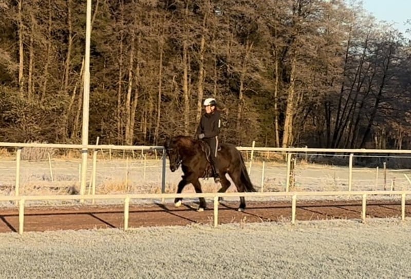 Elja vom Carzerhof *2020 in D. 1.43m V: Fylkir vom Kranichtal (FIZO 8.47 und Fünfgangweltmeister) M: Silfra vom Carzerhof Elja ist eine immer motivierte talentierte junge Stute, die noch am Anfang ihrer Reitpferdekarriere steht. Sie ist ein absoluter Sonnenschein. Immer gut drauf und freut sich, wenn sie etwas tun darf. Dabei ist sie sehr neugierig, intelligent und möchte alles richtig machen. Elja wurde schonend und vielseitig ausgebildet. Sie geht sicher ins Gelände, läuft super als Handpferd, kennt die grundlegenden dressurmäßigen Lektionen und die Arbeit an der Doppellonge. Elja ist fünfgängig veranlagt, wurde bisher aber nur viergängig geritten. Bei fleißigem mittlerem Temperament verfügt sie über eine gleichmäßige Gangtrennung und viel flüssigen Tölt mit schicken Bewegungen. Ihre Grundgangarten sind raumgreifend bei immer schöner Form. Den vielversprechenden Pass zeigt sie immer wieder in Übergängen. Bei weiterer Ausbildung ist Elja sicher ein tolles Pferd auch für junge Reiter. Ein vielversprechendes immer motiviertes Pferd für den (Jugend-)Sport, Abzeichen oder einfach stundenlange Töltausritte. Elja ist für jeden Spaß zu haben! Preiskategorie C: 10.000 - 15.000 € Standort 29614 Soltau Aufgrund von vermehrtem Reittourismus und um diesen den Pferden zu Liebe zu vermeiden, berechne ich eine Pauschale von 40€ pro Termin. Diese wird natürlich bei Kauf erstattet.