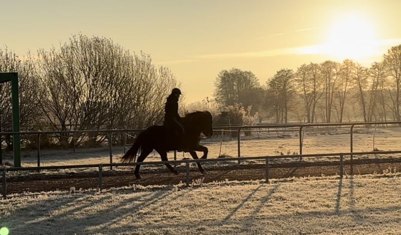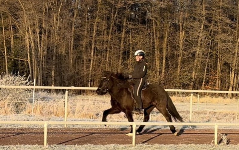 Elja vom Carzerhof *2020 in D. 1.43m V: Fylkir vom Kranichtal (FIZO 8.47 und Fünfgangweltmeister) M: Silfra vom Carzerhof Elja ist eine immer motivierte talentierte junge Stute, die noch am Anfang ihrer Reitpferdekarriere steht. Sie ist ein absoluter Sonnenschein. Immer gut drauf und freut sich, wenn sie etwas tun darf. Dabei ist sie sehr neugierig, intelligent und möchte alles richtig machen. Elja wurde schonend und vielseitig ausgebildet. Sie geht sicher ins Gelände, läuft super als Handpferd, kennt die grundlegenden dressurmäßigen Lektionen und die Arbeit an der Doppellonge. Elja ist fünfgängig veranlagt, wurde bisher aber nur viergängig geritten. Bei fleißigem mittlerem Temperament verfügt sie über eine gleichmäßige Gangtrennung und viel flüssigen Tölt mit schicken Bewegungen. Ihre Grundgangarten sind raumgreifend bei immer schöner Form. Den vielversprechenden Pass zeigt sie immer wieder in Übergängen. Bei weiterer Ausbildung ist Elja sicher ein tolles Pferd auch für junge Reiter. Ein vielversprechendes immer motiviertes Pferd für den (Jugend-)Sport, Abzeichen oder einfach stundenlange Töltausritte. Elja ist für jeden Spaß zu haben! Preiskategorie C: 10.000 - 15.000 € Standort 29614 Soltau Aufgrund von vermehrtem Reittourismus und um diesen den Pferden zu Liebe zu vermeiden, berechne ich eine Pauschale von 40€ pro Termin. Diese wird natürlich bei Kauf erstattet.