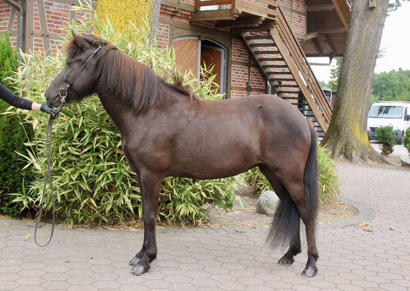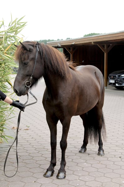 Elja vom Carzerhof *2020 in D. 1.43m V: Fylkir vom Kranichtal (FIZO 8.47 en wereldkampioen in de vijfgang) M: Silfra vom Carzerhof Elja is een altijd gemotiveerde, zeer getalenteerde jonge merrie die nog aan het begin van haar carrière als rijpaard staat. Ze is een absolute zonneschijn. Altijd in een goede bui en blij als ze iets mag doen. Ze is daarbij zeer nieuwsgierig, intelligent en wil alles goed doen. Elja is voorzichtig en veelzijdig opgeleid. Ze gaat veilig het terrein in, loopt geweldig als handpaard, kent de basis dressuurlessen en het werken aan de dubbele longe. Elja heeft een aanleg voor de vijfgang, maar is tot nu toe alleen viergaand gereden. Met een ijverige gemiddelde temperament beschikt ze over een zeer goede gangscheiding en veel potentieel in elke gang. Ze toont veel vloeiende en taktzuivere tölt met zeer mooie bewegingen, die echter nog verder ontwikkeld moet worden. In de basisgangen laat ze zich al goed buigen en vormen. Bij verdere opleiding is Elja zeer interessant voor de sport, trainerslicenties of een FIZO. Natuurlijk kan ze ook een geweldig luxe recreatiepaard worden voor urenlange tölttochten. Elja is voor elk plezier te hebben! Prijs categorie D: 15.000 - 20.000 € Locatie 29614 Soltau Vanwege de toegenomen ruitertoerisme en om dit de paarden te besparen, reken ik een vast bedrag van 40€ per afspraak. Dit wordt natuurlijk bij aankoop terugbetaald.