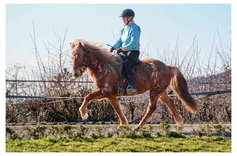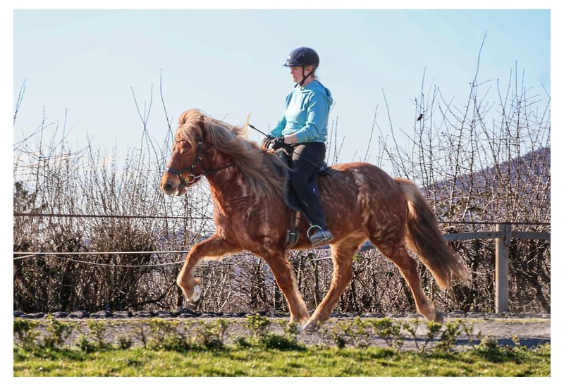 Rjupa ist eine 7-jährige, stabil gebaute Fünfgangstute, die mit ihrem hübschen Kopf und ihrer charmanten Ausstrahlung sofort ins Auge fällt. Schon beim ersten Kennenlernen zeigt sie sich als freundliche, zugängliche und angenehm neugierige Partnerin. Ein echtes Wohlfühlpferd im täglichen Umgang. Unter dem Sattel überzeugt Rjupa mit viel Tölt, der sich leicht abrufen lässt und eindeutig ihre Lieblingsgangart ist. Aktuell kommt sie dabei gelegentlich noch etwas aus der Balance, wodurch sie kurzzeitig den Takt verlieren kann. Hat sie diesen jedoch gefunden, zeigt sie einen sicheren, wunderbar bequemen Tölt, der viel Freude bereitet. Der Trab ist jederzeit zuverlässig abrufbar, mit gutem Schwung und einer schönen Anlehnung. Ihr Galopp weist eine klare Bergauftendenz auf und kommt dem beliebten Schaukelpferdegalopp schon sehr nahe. Insgesamt präsentiert Rjupa alle vier Gänge in ansprechender Qualität und bringt eine solide Basis für ihre weitere Ausbildung mit. Mit weiterführendem Training entwickelt sich Rjupa zu einem vielseitigen, gehobenen Freizeitpferd, das sowohl auf Kursen als auch auf Turnieren eine gute Figur macht. Gleichzeitig genießt sie entspannte Ausritte am langen Zügel und bringt damit genau die Mischung mit, die sich viele Reiter wünschen. Im Herdenverband sowie im täglichen Handling zeigt sie sich unkompliziert und angenehm. Ein verlässlicher Partner für alle, die ein ehrliches, freundliches Pferd suchen. Rjupa wurde im vergangenen Jahr aus Island importiert. Trotz vorsorglicher Maßnahmen hat sie ein Ekzem entwickelt, was bei der weiteren Haltung berücksichtigt werden sollte. Rjupa ist die ideale Partnerin für Reiter, die ein komfortables Töltpferd mit viel Herz und Entwicklungspotenzial suchen und dabei auch den Blick für das Wesentliche nicht verlieren. Wer einmal auf ihr gesessen hat, wird schnell merken, wie viel Freude sie bereiten kann.