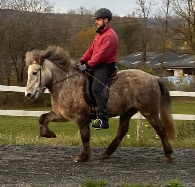 Lif, jument de 6 ans, d'origine allemande, sans aucune maladie ni vice, jeune, dynamique, de grande taille, peut Tölt dans toutes les situations, avec un tempérament équilibré et des réactions fines. Toujours désireuse de plaire à son cavalier, très proche de l'humain. Si vous souhaitez faire de longues balades royales en forêt, former vous-même un T4 Tölt ou recherchez une jument de reproduction avec un pedigree passionnant, Lif est la partenaire idéale. Pour toute demande sérieuse, n'hésitez pas à me contacter. Je serai ravi de votre appel !