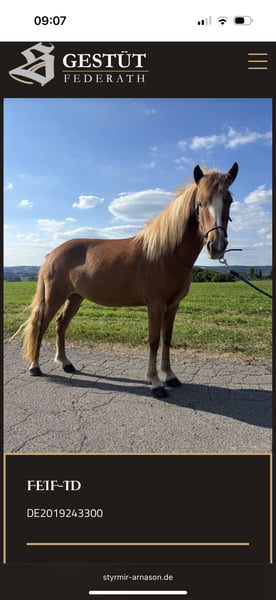Blæja von Federath ist eine 6 jährige Stute unserer Zucht. Sie zeichnet sich durch ihre Feinheit und Freundlichkeit sowohl im Umgang als auch unterm Sattel aus. Sie ist stets leistungsbereit und zeigt hoch weite Bewegungen in immer schöner Form. Ihre Mutter ist unsere Zuchtstute Kringla vom Schloßberg, die uns bereits eine Reihe von tollen Nachkommen geschenkt hat. Ihr Vater ist Smári frá Hvoli, ein top fünfgängig veranlagter Sporthengst. Blæja ist ein spannendes, leicht zu reitendes Nachwuchspferd für den ambitionierten Reiter.