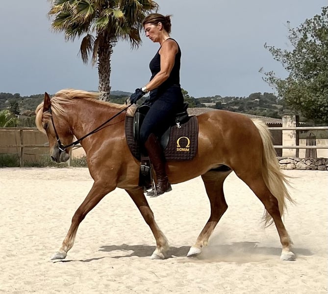 Mit einem weinenden Auge verkaufe ich meine wunderschöne .großrahmige Viergangstute. Ein echtes Herzenspferd - sensibel, fein in der Kommunikation und immer bemüht dem Menschen zu gefallen. Ihr Potential will allerdings geritten werden. Du solltest deshalb ein erfahrener und feiner Reiter sein, der ihr weiter behilflich sein kann ihre innere Schiefe zu korrigieren um noch besser in die Balance zu kommen. Hier lohnt es sich etwas Zeit zu investieren. Mit ihrer besonderen Erscheinung und ihrer positiv zugewandten Art ist Daudi eine Stute, die sowohl optisch als auch charakterlich begeistert! Sie ist 2017 in Deutschland geboren, seit 2022 in meinem Besitz und ekzemfrei. Aus persönlichen Gründen ist sie 2023 und 2024 kaum geritten worden. Aktuell steht sie zum Training und weiterer Ausbildung in Süddänemark auf Stutteri Vestmose (2 Std. bis Deutschland). Hier kann sie noch den ganzen November jederzeit angesehen und Probe geritten werden. Wir haben Sie dieses Jahr, bevor wir sie ins Training gegeben haben, von mehreren Tierärzten und Therapeuten durchchecken lassen, da sie immer mal wieder im Schritt gestolpert ist – aber, es wurden keine außergewöhnlichen körperlichen Beschwerden gefunden. Sie hat einen sehr schönen großrahmigen Körperbau, der bis auf eine leichte Fehlstellung in der rechten Vordergliedmaße wohl geformt und gut proportioniert ist. Sie ist aufgeschlossen und mutig, nicht zickig ihrem Menschen gegenüber, äußert aber durchaus, wenn ihr etwas unangenehm ist. Aktuell wird Daudi in den 3 Grundgangarten geritten und trainiert, wobei sie grundsätzlich taktrein geht und nun nur noch selten stolpert. Den Tölt haben wir aus trainingstechnischen Gründen nicht weiter gefördert, er ist aber definitiv vorhanden und kann bei weiterer Ausbildung und Wunsch wieder trainiert werden. Sie kennt die Halle, die Ovalbahn und liebt das Gelände. Auch als Handpferd eignet sie sich sehr gut und in der Gruppe geht sie sowohl vorne, als auch in der Mitte oder hinten, auch alleine ausreiten ist kein Problem. Sie besitzt ein angenehmes mittleres Temperament: fleißig, aber nicht überdreht. Mit klarer, konsequenter Führung kann sie wunderbar entspannen. Anhängerfahren zählt momentan noch nicht zu ihren Lieblingsdisziplinen, doch mit etwas Heu und Geduld lässt sie sich gut überzeugen. - der Sattel wurde Anfang November komplett neu aufgepolstert und angepasst - die Zähne wurden zuletzt im März 25 kontrolliert und gemacht - bis Juni 2023 ging sie mit Eisen - mit Gebiss und gebisslos geritten Für Daudi wünsche ich mir einen Platz, an dem sie Teil einer netten Herde sein und sich frei und unbeschwert bewegen darf - so, wie sie es liebt! Da sie in ihrer Ausbildung noch nicht auf dem Niveau eines 8 jährigen Pferdes ist, wird sie bei passendem Reiter deutlich unter Wert abgegeben. Der passende Platz ist mir wichtiger als der Preis!