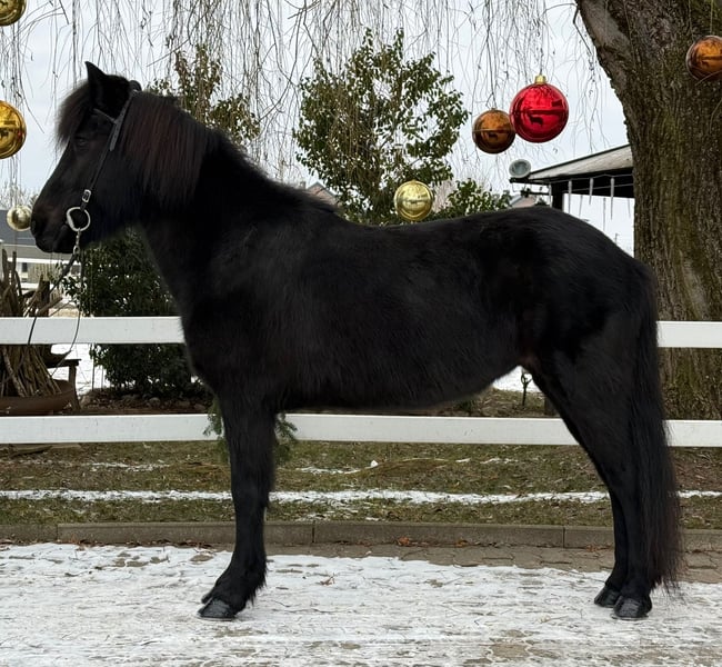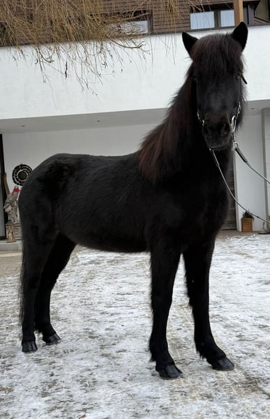 Dísa of Svennebjerg Mare, 16.1 hh *Born in Germany in 2017, free of eczema Black mare without markings Four-gaited riding horse Veterinary certificate available ✅ Sire: Avaldi frá Garði 8.05 (Ext. 7.96, Re. 8.10)‼️ Dam: Tjörvi frá Sunnuhvoli 8.46 (Ext. 8.44, Re. 8.47)‼️ Mother: Ísafold of Svennebjerg Grandfather: Viktor frá Diisa 8.63 (Ext. 8.48, Re. 8.74)‼️ Dísa is our little sweetheart in the stable. You couldn’t find a sweeter or more gentle mare. She loves being groomed and cuddles incredibly well. Due to her temperament, her delicate and elegant build, she is perfect for therapeutic riding, especially with children. This mare also brings a smile to everyone’s face because her gaits are clearly separated, incredibly beautiful, and so easy to ride that every ride becomes a pleasure. Dísa can be enjoyed as a leisure horse or ridden in sport. Her pedigree is also quite impressive, featuring well-known names like Viktor frá Diisa, making her highly interesting for breeding. She has already foaled a healthy foal. Dísa knows everything one needs to know in the terrain and is a totally cool and relaxed ride. She can be ridden alone or in a group, never tries to be first, and can always be slowed down and controlled. While she may not be the tallest mare, she has a big heart, fantastic gaits, and working with her is simply a lot of fun and a huge pleasure. Anyone interested in meeting and trying our adorable mare is welcome to do so by appointment at our place in A-5221 Lochen am See.