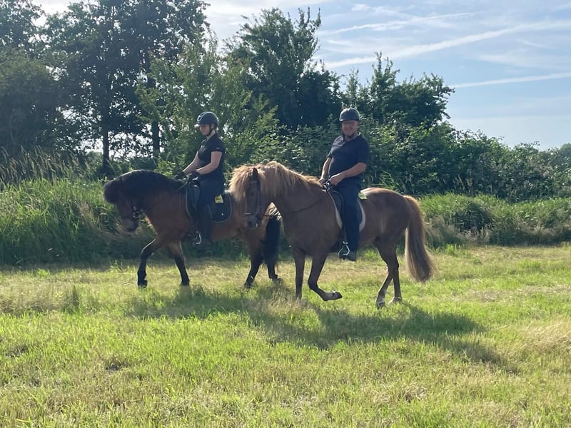 **Verkaufsanzeige: Wunderschöne Islandpferd-Stute zu verkaufen** Wir suchen ein liebevolles neues Zuhause für unsere bezaubernde Islandpferd-Stute. **Merkmale:** - **Rasse:** Islandpferd - **Geschlecht:** Stute - **Geburtsjahr:** 2016 - **Farbe:** Fuchs - **Stockmaß:** 140 cm Diese talentierte Stute eignet sich hervorragend für die Freizeitgestaltung. Sie ist gut geritten und hat ein freundliches, ausgeglichenes Wesen. Ideal für Reiter, die Freude an der Natur und am entspannten Reiten haben. Sie ist im Umgang sehr brav und hat einen tollen Charakter. Ob beim Ausritt oder in der Halle, sie zeigt sich stets kooperativ und lernwillig. Wir wünschen uns für sie ein liebevolles Zuhause, wo sie weiterhin gefordert und gefördert wird. Bei Interesse oder Fragen freuen wir uns über Ihre Nachricht!