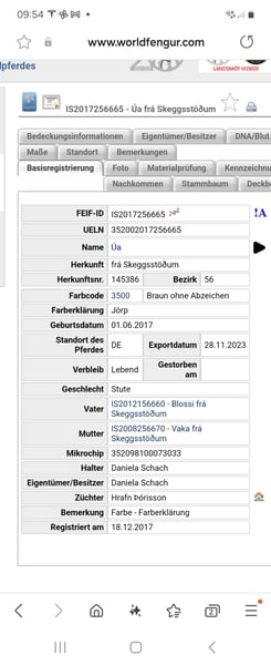 Ua cerca il suo umano! Ua è arrivata due anni fa dall'Islanda, dove è stata anche montata. Purtroppo, il trasporto non l'ha ben tollerata e ora si mostra diffidente nei confronti delle persone. Abbiamo lavorato molto sulla gestione e il contatto, ma il percorso verso diventare un cavallo da dressage è ancora lungo. In situazioni nuove si blocca e si spaventa, ma non è mai cattiva o impulsiva. Ha bisogno di una persona calma, che le mostri il mondo con pazienza. Le piace lavorare a terra ed è molto sensibile nella comunicazione. Inoltre, ha sviluppato un eczema che, con una coperta adeguata, è facilmente gestibile.
