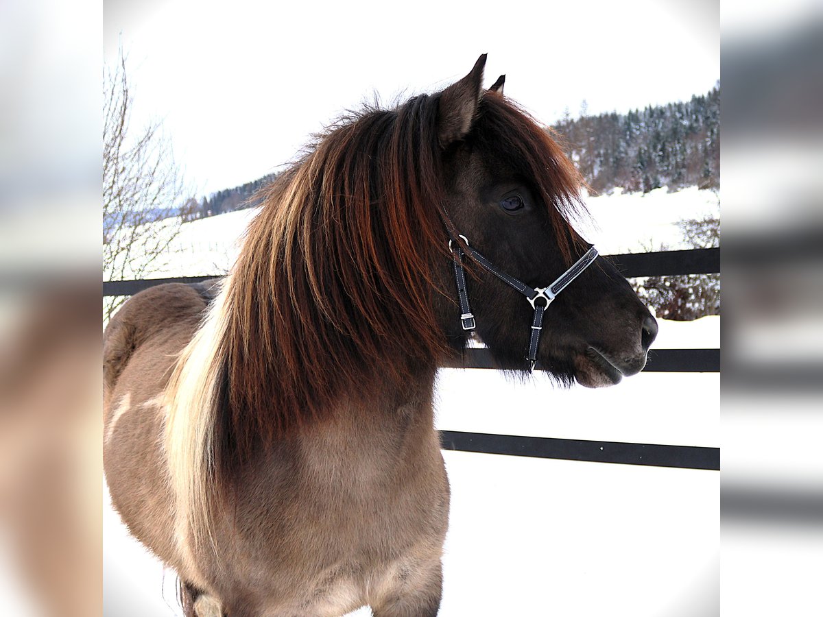 Hnísa is a large, beautiful mouse-colored pinto mare with a great character and good gaits, always friendly towards people. We liked Hnísa from the very beginning, which is why we have bred two foals with her, both of which turned out wonderfully. After weaning the last foal, we started her training in spring '24. Hnísa is familiar with groundwork, lunging, and double lunging; she is always eager and very well-behaved when out in the field. In the riding arena, she is uncomplicated and always strives to please the rider. All in all, she is a real fun horse, which we currently see in the advanced leisure riding sector. With further training, she will also make a good impression in sports. Further information and many pictures from her first day of life can be found on our homepage at www.islandpferdehof-obersolbach.de/fotogalerie/hnísa. If you are interested, we look forward to your call.