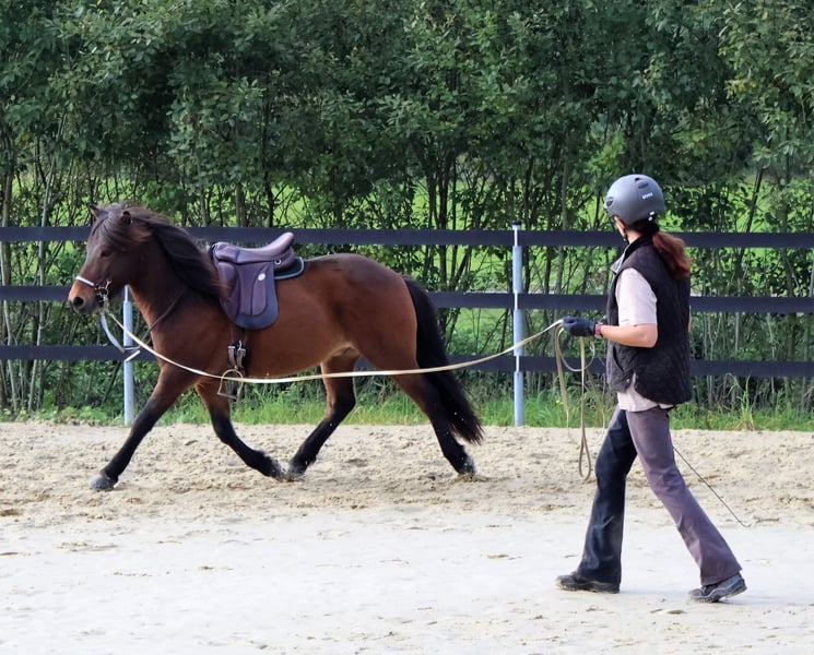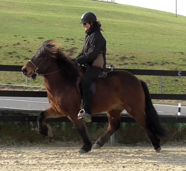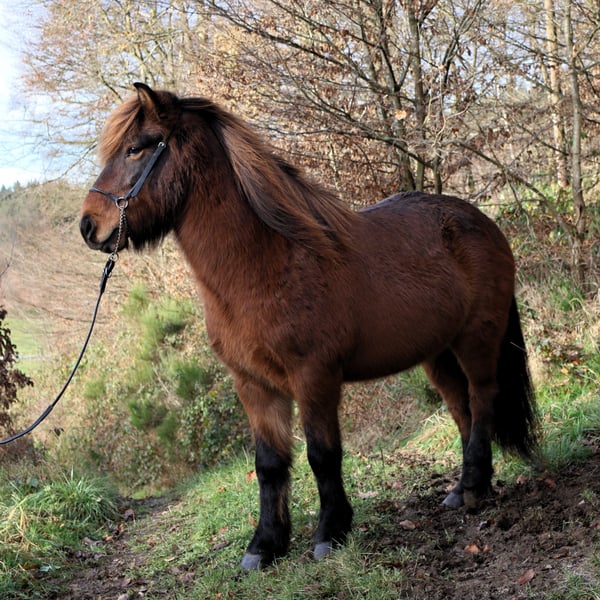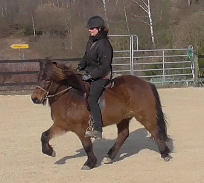 Limbó est un hongre poli, doré, aimant courir à 5 allures, avec de bonnes bases et des allures prometteuses. Né dans notre ferme et élevé dans le respect de l'espèce dans le troupeau d'étalons, il est aujourd'hui hongre de rang moyen dans un troupeau mixte et est bien toléré. Sa formation a commencé en été 22 et s'est poursuivie jusqu'à aujourd'hui en douceur, avec suffisamment de pauses. Limbó apprend très vite, est coopératif et veut faire plaisir à son maître. Qu'il s'agisse d'un manège, d'une piste ovale ou d'un terrain, il fait toujours preuve d'enthousiasme. Limbó serait un cheval optimal pour le sport des jeunes. De nombreuses photos et vidéos depuis son premier jour de vie, sont disponibles sur notre site Internet à l'adresse www.islandpferdehof-obersolbach.de/fotogalerie/limbó. Si vous êtes intéressé, n'hésitez pas à nous appeler.