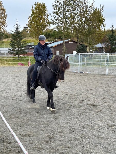 V: Blear frá Torfunesi M: Djásn frá Vatnsleysu Jörvar was imported directly from Iceland by me. He is a very attentive horse that still needs a confident handler on the ground whom he can trust. Under saddle, he is lively and spirited in the Icelandic style. His tölt is clearly rhythmical. He has distinctly separated gaits that are always readily available. He is comfortable both riding alone and in a group, and he simply brings joy whether in the arena or on the trail. I have never had any issues with him at the farrier or when loading him. Jörvar is especially suitable for ambitious riders who also wish to compete in sport horse disciplines. He requires a skilled rider who can provide him with security both on the ground and in the saddle, so he is not suitable for beginners. However, for an experienced rider, he is a true delight, as he brings his full Icelandic charm and enthusiasm to every ride, captivating and inspiring. Jörvar is regularly dewormed and vaccinated. He can be tried out under saddle by serious interested parties.